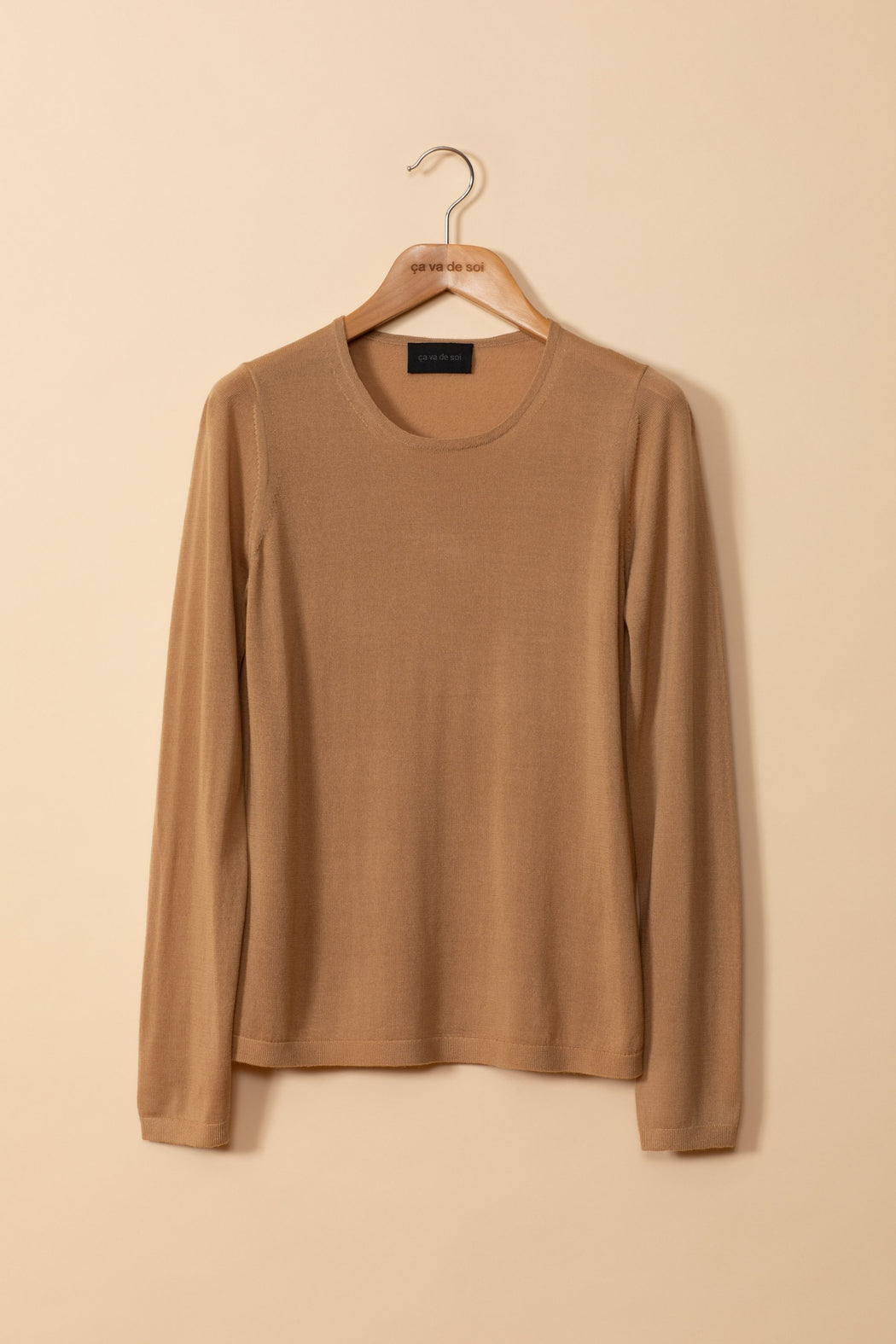 Ce tricot ras-du-cou est fait d’une laine fine de mérinos qui est conçue pour s’adapter aux changements de température. ça va de soi a choisi cette matière pour son attrait intemporel et 4-saisons. Il n'y a pas de plus classique que ce col rond à manches longues! Nous avons modernisé cet icône en le raccourcissant légèrement et en lui donnant une ligne plus droite. Maro vous suivra partout, à tout moment! La laine mérinos peignée australienne Super 140 (ELS-Extra-Long-Staple) lui confère une allure durable et une surface facile à entretenir. Le micron fin de cette laine (16,5) vous permettra de la porter directement sur la peau ou de servir de pièce de superposition par temps plus froid. Nous avons produit ce tricot en 4 teintes riches (teint en écheveau par des maîtres italiens): neige, noir, crevette, et chameau.