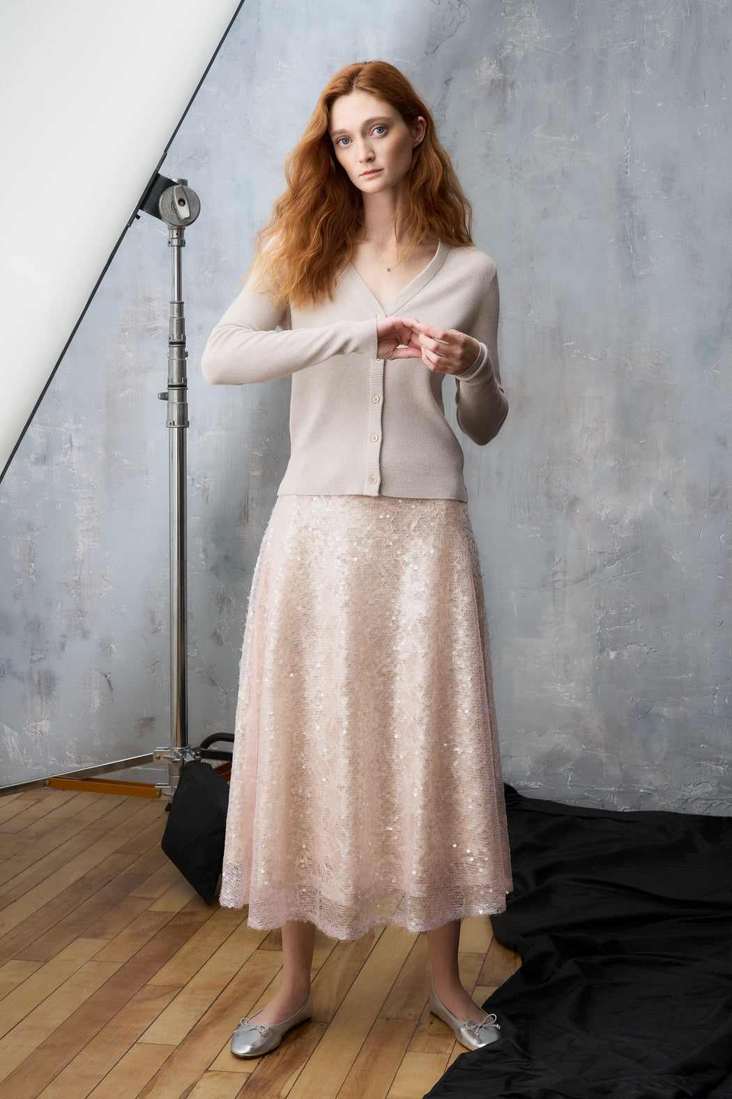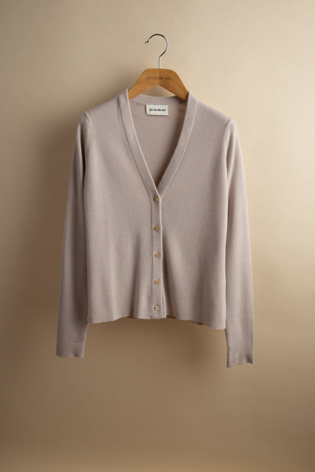 Ce cardigan iconique et versatile conjugue la délicatesse des fibres les plus fines à une allure d’une fluidité parfaite. Ses bords tubulaires, nets et sensuels, rappellent le fini soyeux d’une pièce de lingerie précieuse — un équilibre entre pureté et séduction.
