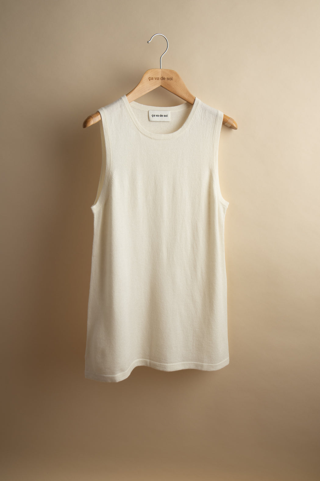 Un petit bijou de simplicité, clin d’oeil à l’élégance épurée des années 90. Quoi de plus actuel que ce pull allongé sans manches ? Sa coupe droite, épurée, son col rond et les discrètes finitions tubulaires feront forte impression à toute heure de la journée. On l'aime autant en twin-set sous le cardigan BELLATRIX que sur une chemise en mode décontractée le week-end. Ou encore solo à même la peau, pour une soirée plus habillée. Il vous suivra au fil des heures, sans jamais perdre de confort et d'assurance.