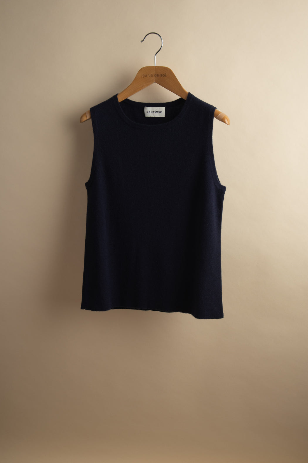 Un petit bijou de simplicité. Quoi de plus actuel que ce pull sans manches qui conjugue la délicatesse des fibres les plus fines à une allure d’une fluidité parfaite. Ses bords tubulaires, nets et sensuels, rappellent le fini soyeux d’une pièce de lingerie précieuse — un équilibre entre pureté et séduction.