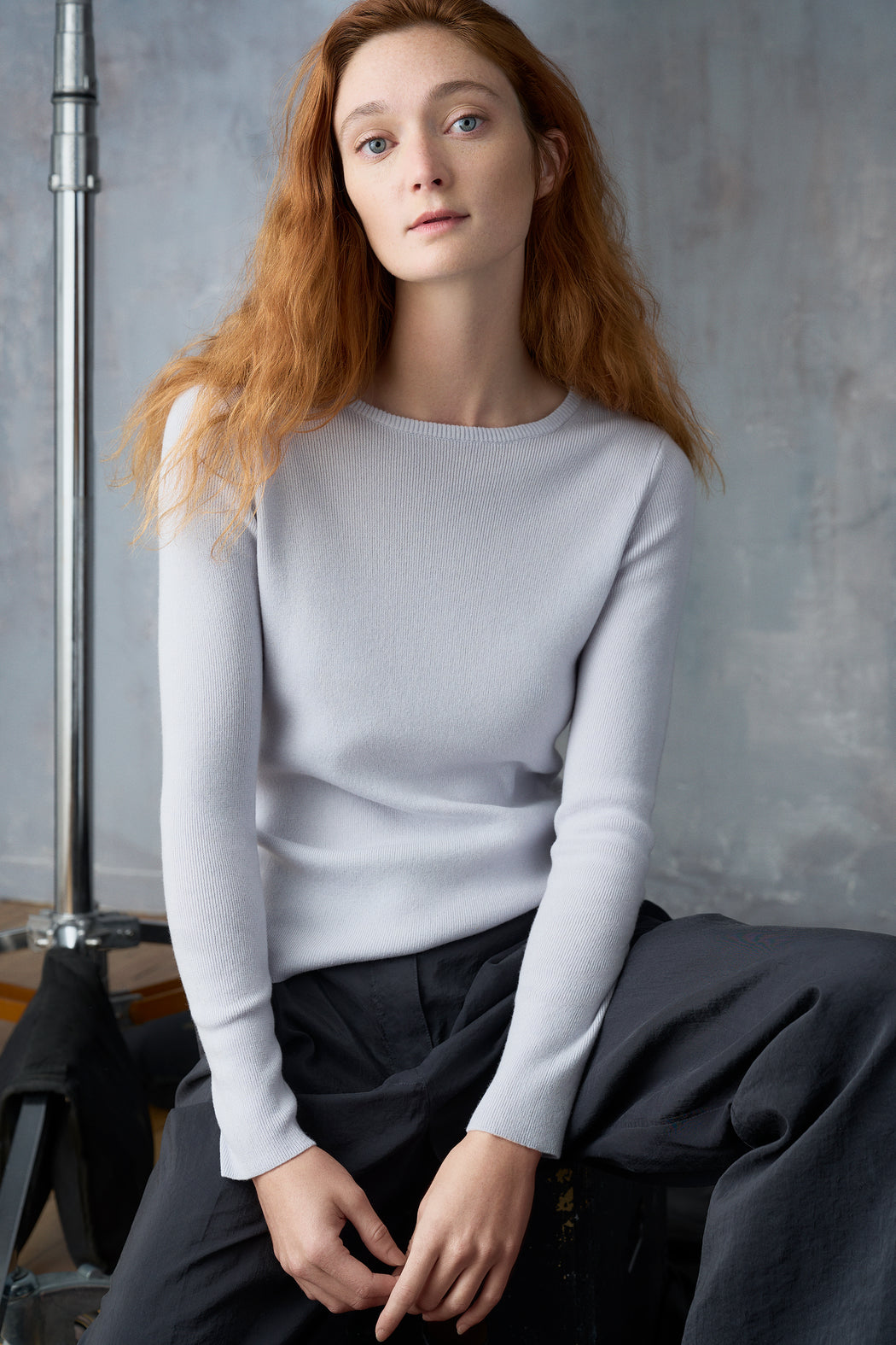Un cachemire et soie cardé d’exception d’un fin titrage [2/42] et rarement disponible en fibres cardées. Filé en Italie et tricoté dans nos ateliers en jauge ultra-fine, la 16, une de nos spécialités. Cet assemblage noble, allie la chaleur du cachemire à l’éclat et à la légèreté de la soie. Ses propriétés thermiques et isolantes lui permettent d’être porté toute l’année, comme une seconde peau aérienne. Conçu pour durer et séduire à travers le temps, révélant la quintessence de cette matière rare.