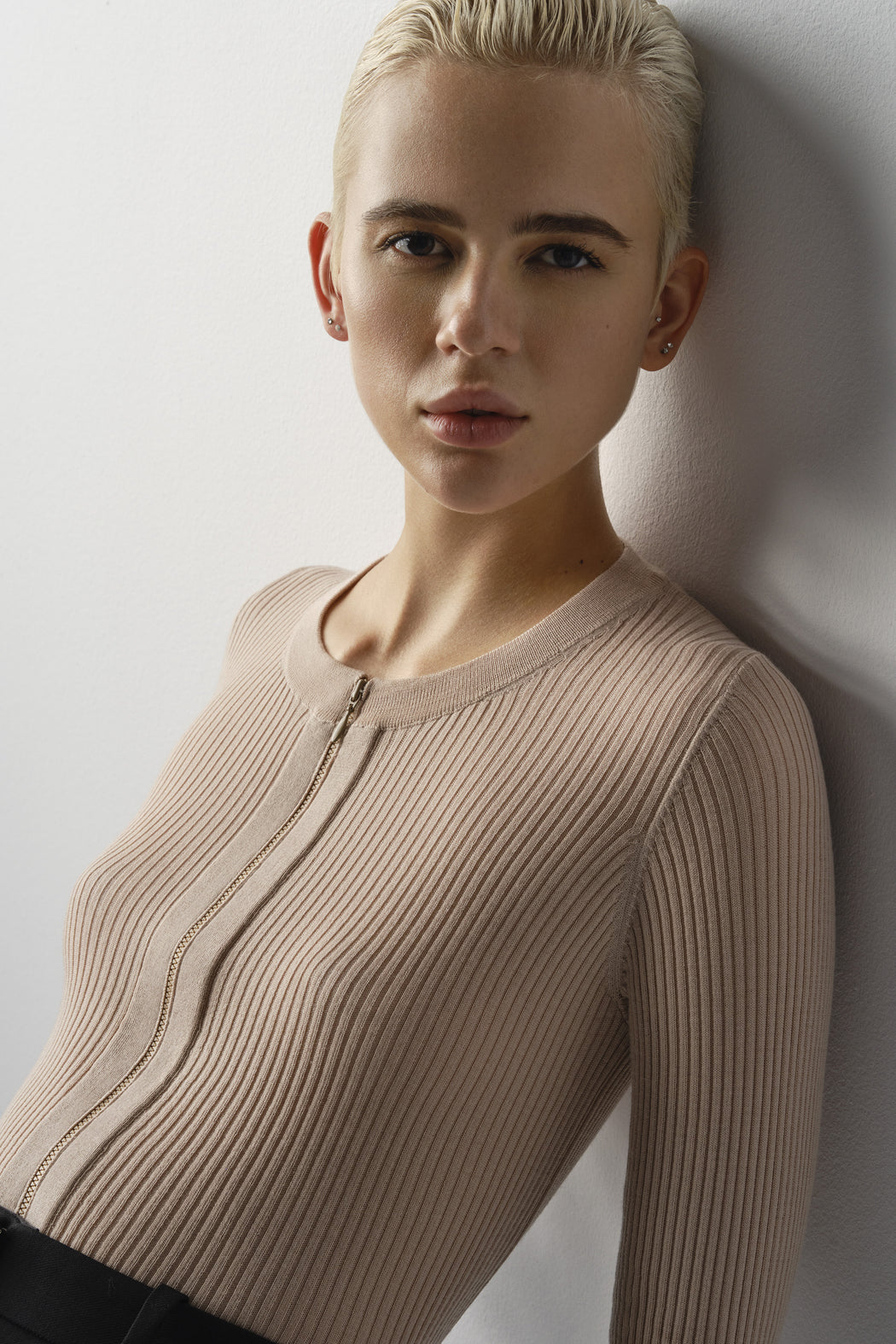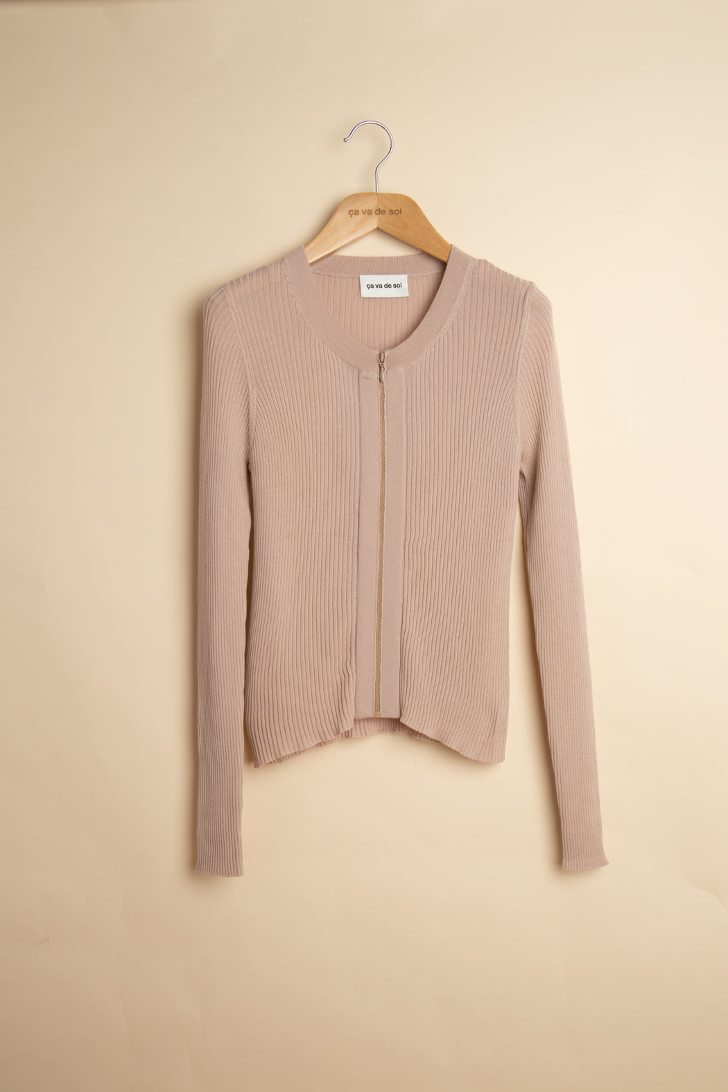 Ce petit cardigan à col rond et à fermeture éclair est un passe-partout.