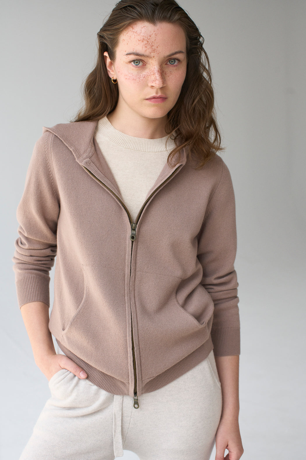 Ce cardigan à capuche avec fermeture-éclair est un incontournable! Sport, pratique, dynamique. On l’aime aussi pour son côté détente et réconfortant, avec ses 2 poches sur le devant, et ses détails soignés telles que ses finitions en tubulaires, et son jeu de réductions d’aiguilles aux épaules. Vous cherchez un twin-set pour voyager ou être confortable à la maison, sans concession du style ? Le pantalon DESIREE répondra pleinement à votre quête du parfait ensemble…