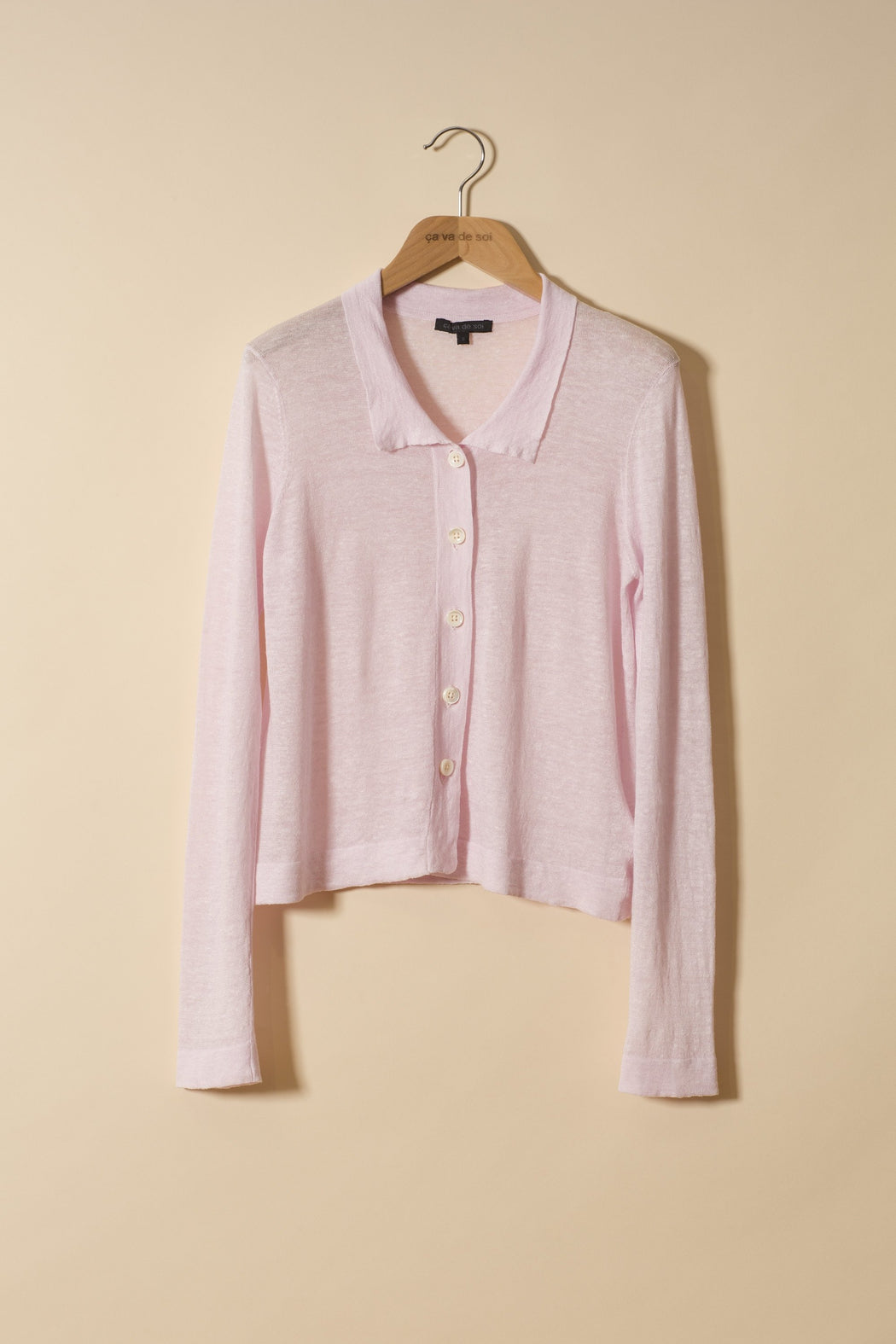 Ce petit cardigan chemisier est fait d’un mélange de notre coton signature, le mako d’Égypte, et d’un fin fil de lin africain brut. Cette matière plein été, qu’on aime appeler le 'duo estival', permet d’apprivoiser en confort et élégance les grandes chaleurs humides. L’amalgame affiche naturellement une allure vintage et est à la base de pièces uniques idéales en saisons de chaleur. Le lin détient une capacité d’absorption d’humidité inégalée.