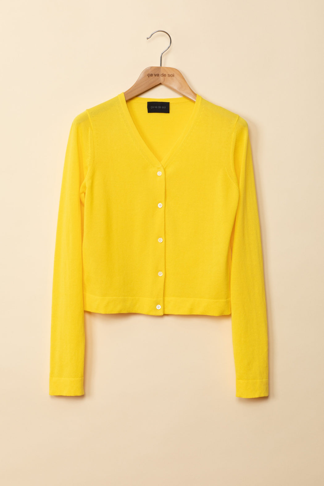 Ce cardigan plein été, encolure V, est fait d’un pur coton égyptien ELS - à soies extra-longues. Un coton effet lin qu’on dirait tissé. Un tricot plein été frais et aérien, d’une fluidité qui se distingue par son corps et son chic. La technique de filage haute torsion Crêpe Artic® vous gardera au sec durant les journées et soirées les plus chaudes et humides. Nous avons produit ce cardigan en 4 couleurs toniques (teinture par écheveaux par des maîtres en Italie): citron, lychee, bleuet, kiwi.