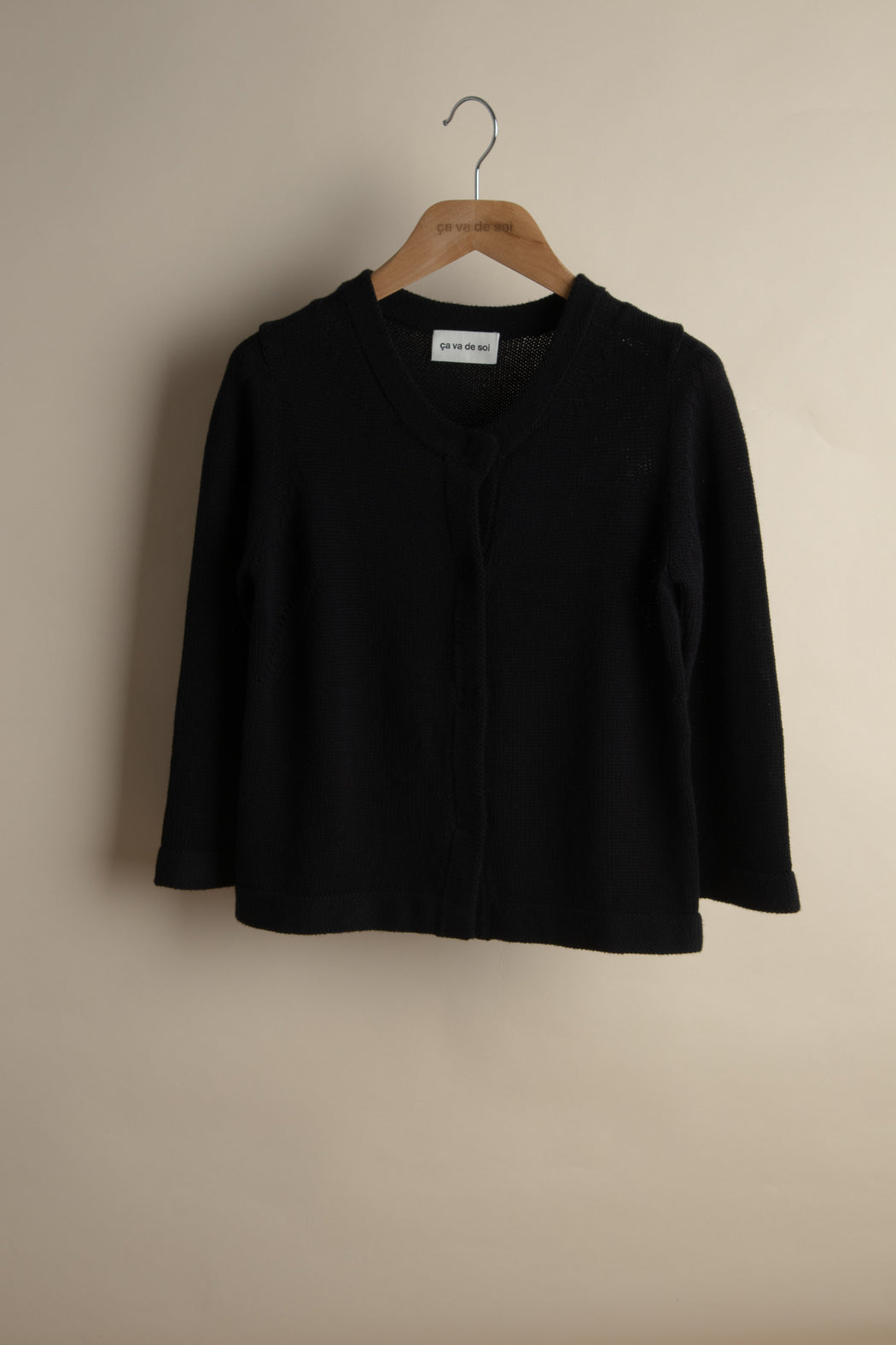 Coupe impeccable et détails soignés : ce cardigan court en maille épaisse à manches ¾, inspiré du tailleur couture, avec ses boutons-pression cachés, adopte un look intemporel et versatile. Idéal pour vos tenues chics ou de bureau, associez-le à la jupe LARI.