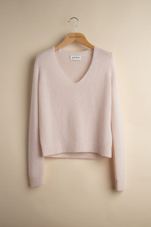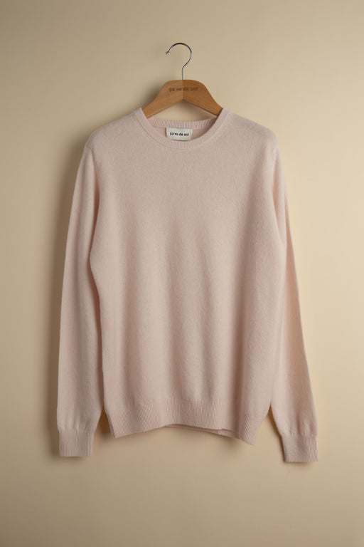 Oser brosser du cachemire de cette qualité, c’est audacieux et judicieux; sachant que le brossage est une technique qui s’applique en général sur des fils moins précieux. De ce savoir-faire unique en résulte une matière d’exception de mousse de cachemire poilue, douillette et aérienne qui nous reconnecte aux années ‘70.