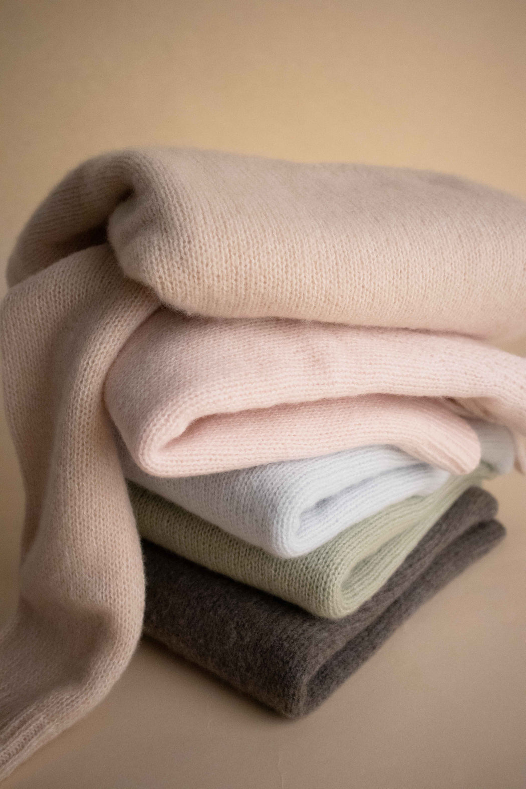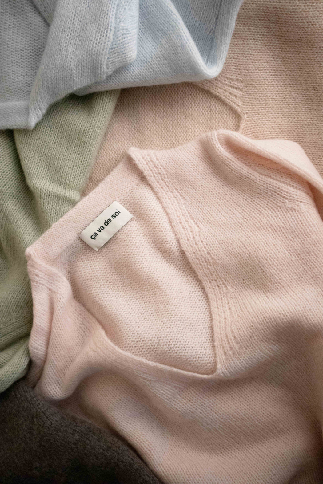 Oser brosser du cachemire de cette qualité, c'est audacieux et judicieux; sachant que le brossage est une technique qui s’applique en général sur des fils moins précieux… De ce savoir-faire unique en résulte une matière d’exception de mousse de cachemire poilue, douillette et aérienne qui nous reconnecte aux années 70. L’ajout de 37% de coton rehausse ses propriétés thermiques, permettant ainsi de le porter toute l'année, autant à l’intérieur qu'à l’extérieur.
