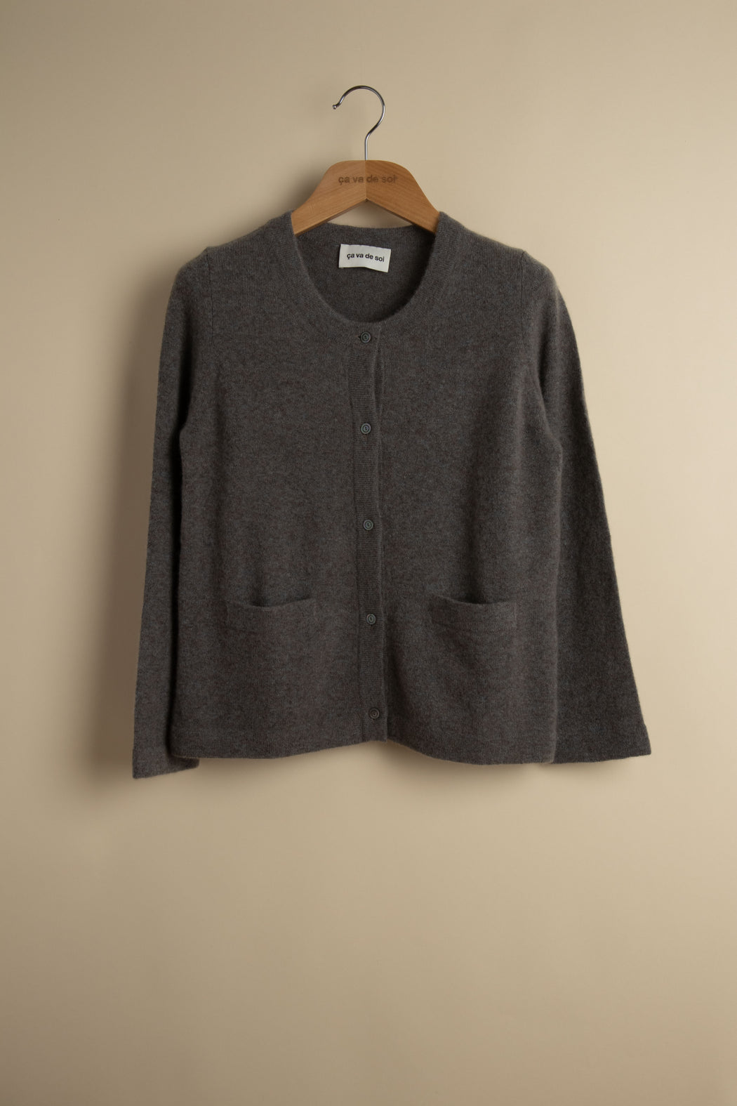 Ses poches discrète lui donne de l’allure et la longueur des manches ajoute à son côté pratique et jeune. Ses jolis boutons de nacre semblable à des bijoux simplement posés là… On le porte fermé à même la peau ou sur notre haut préféré.