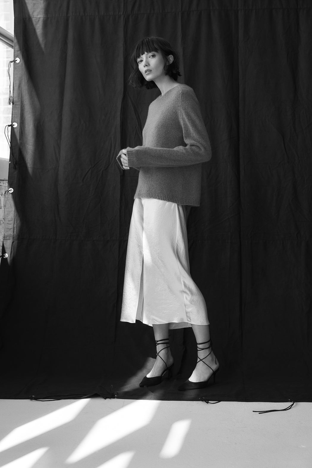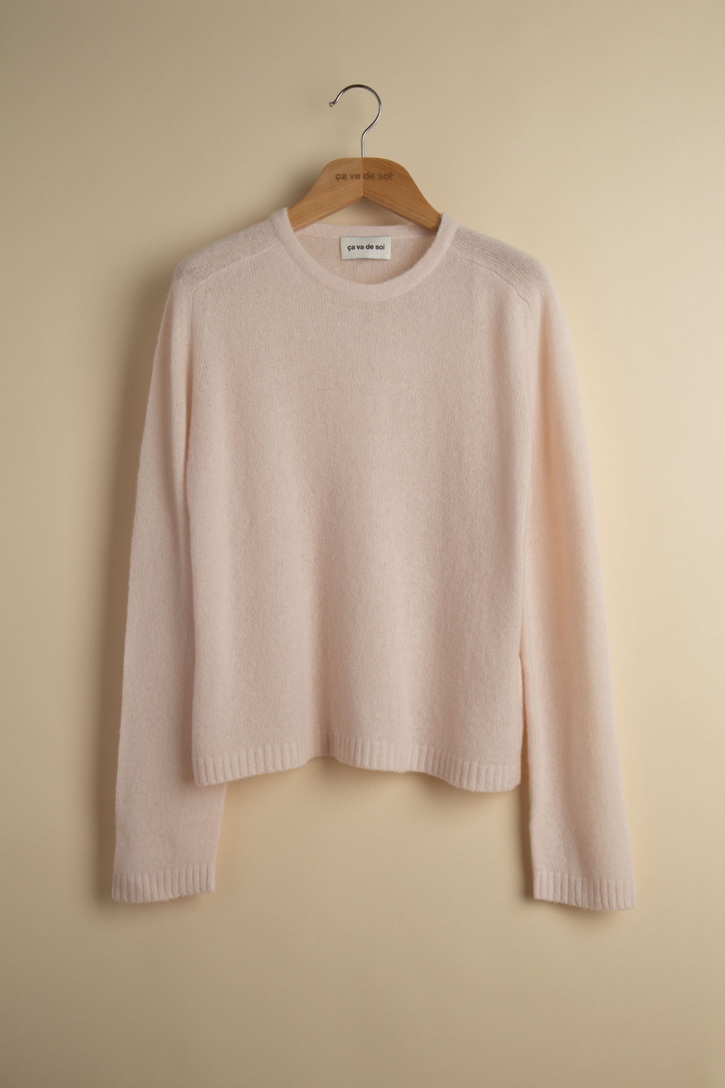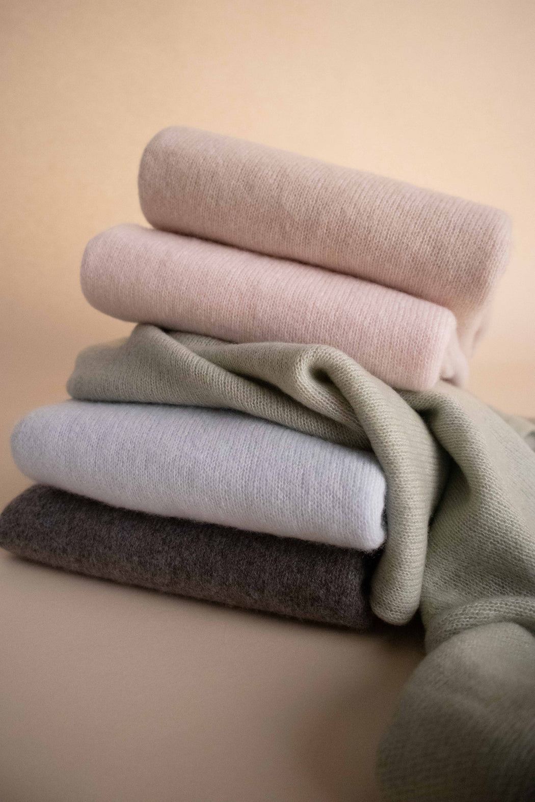 Oser brosser du cachemire de cette qualité, c'est audacieux et judicieux; sachant que le brossage est une technique qui s’applique en général sur des fils moins précieux… De ce savoir-faire unique en résulte une matière d’exception de mousse de cachemire poilue, douillette et aérienne qui nous reconnecte aux années 70. L’ajout de 37% de coton rehausse ses propriétés thermiques, permettant ainsi de le porter toute l'année, autant à l’intérieur qu'à l’extérieur.