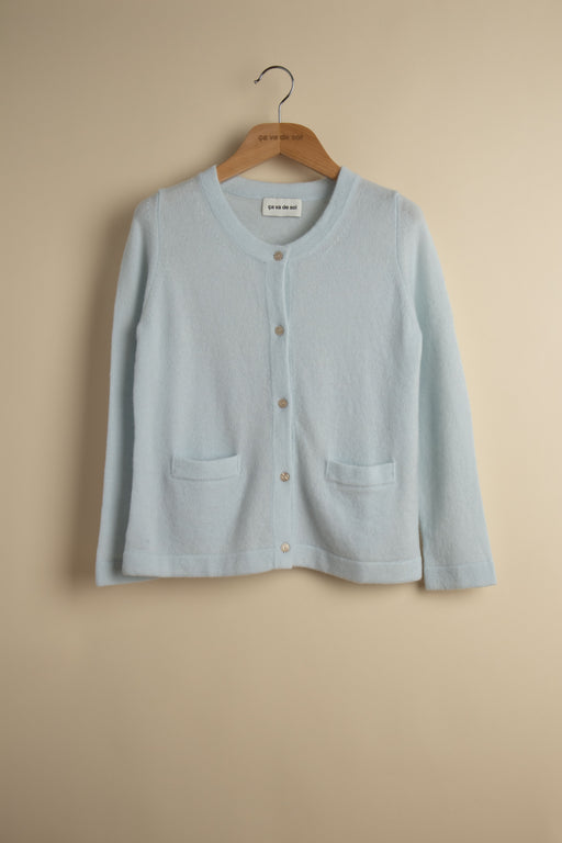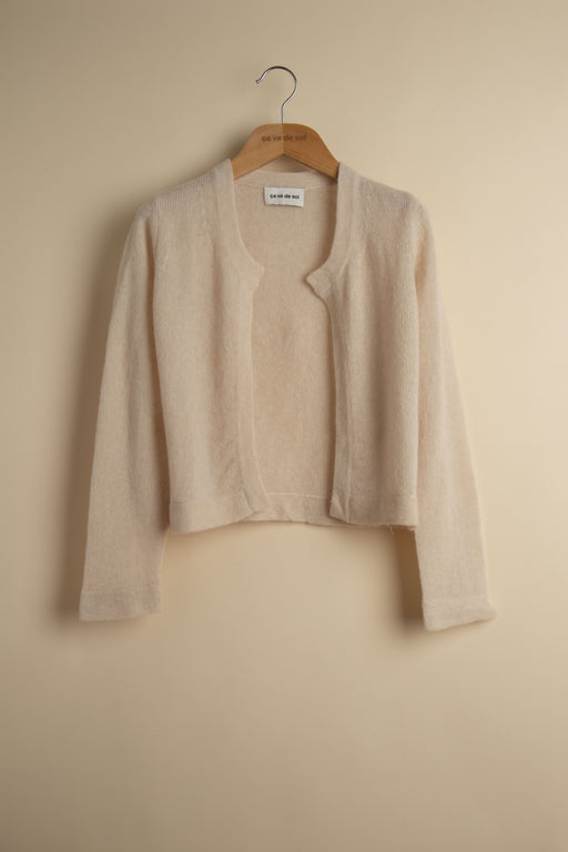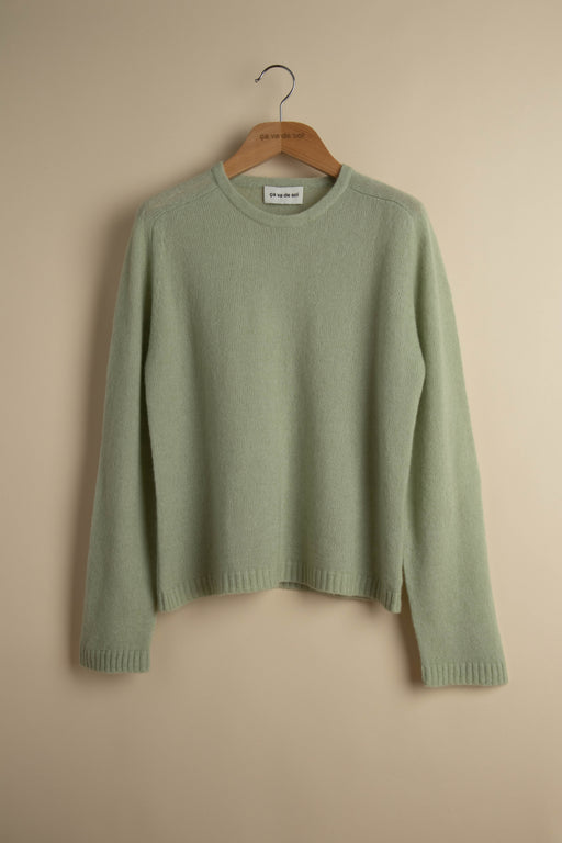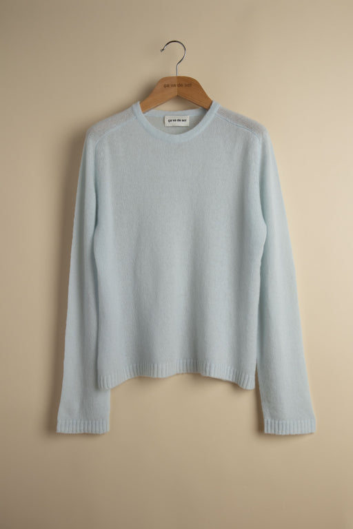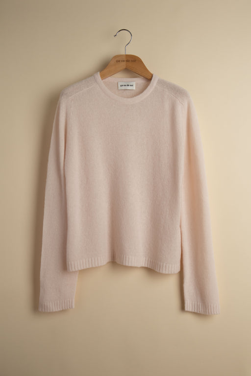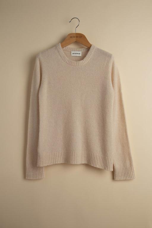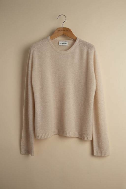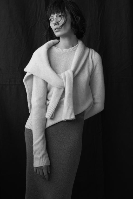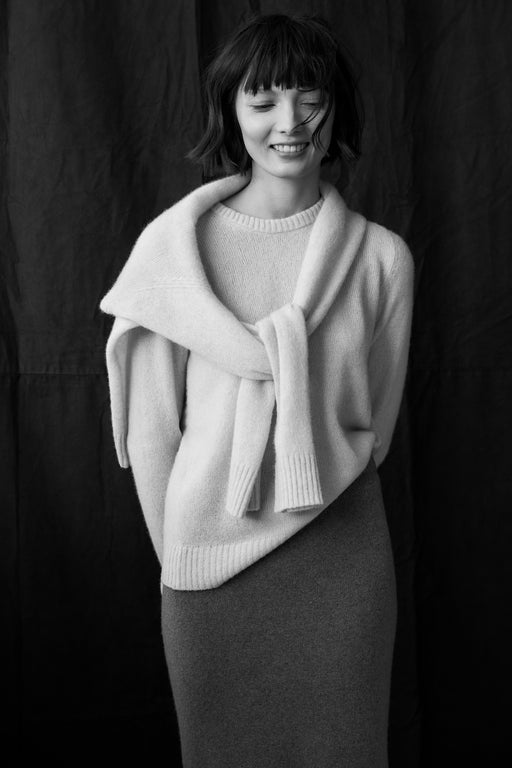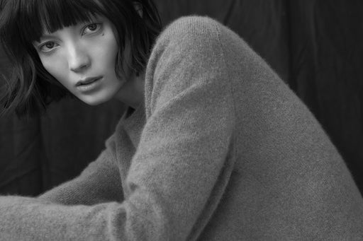 Oser brosser du cachemire de cette qualité, c’est audacieux et judicieux; sachant que le brossage est une technique qui s’applique en général sur des fils moins précieux. De ce savoir-faire unique en résulte une matière d’exception de mousse de cachemire poilue, douillette et aérienne qui nous reconnecte aux années ‘70.