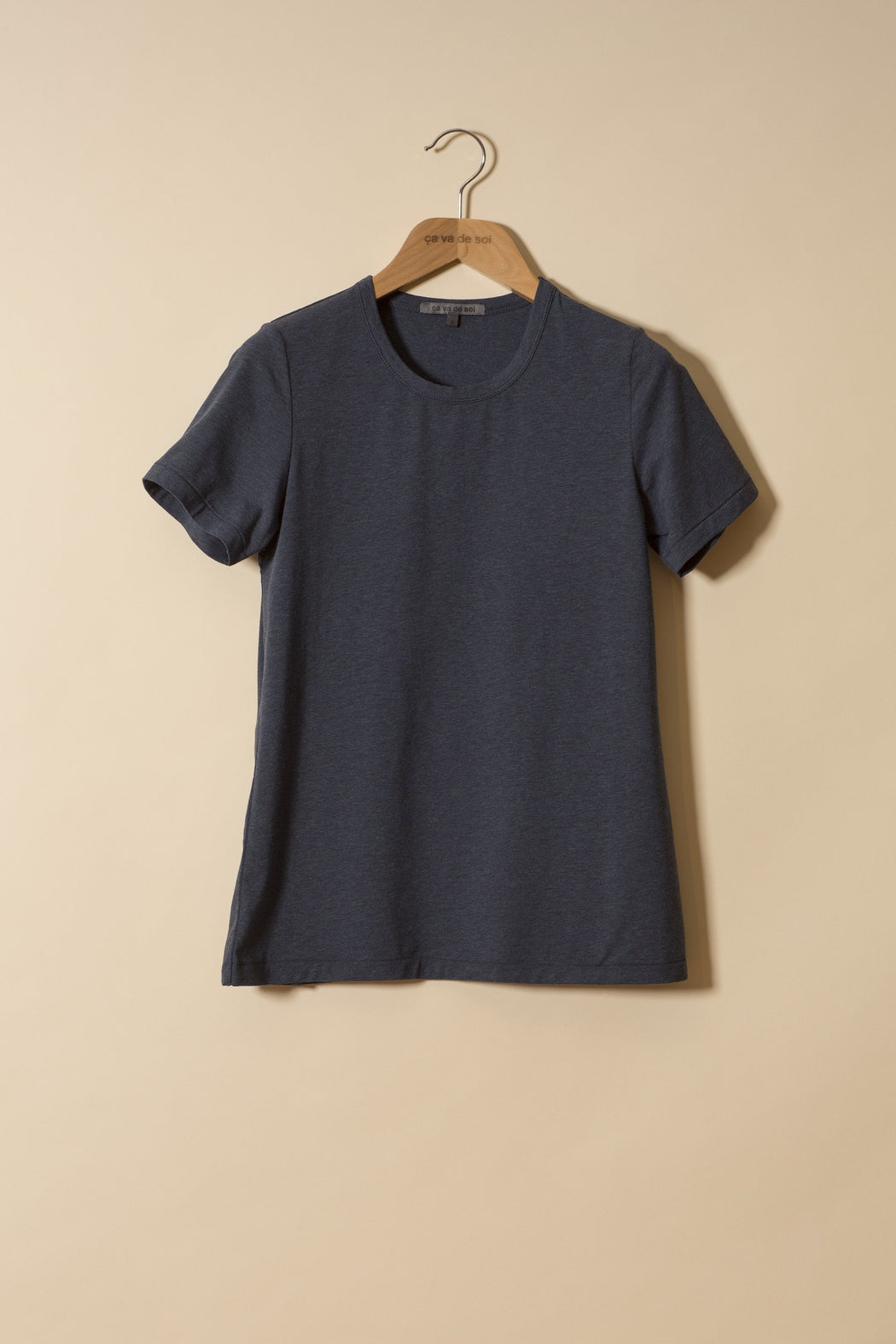 Ce coton mako d'Égypte COM4-ZÉRO® accompagné de 7% Lycra Dupont® suit de près le corps comme une seconde peau. Une touche de stretch qui procure au vêtement du corps et un soutien aussi superbe que discret. À porter en solo ou discrètement glissé sous un cardigan ou autre.