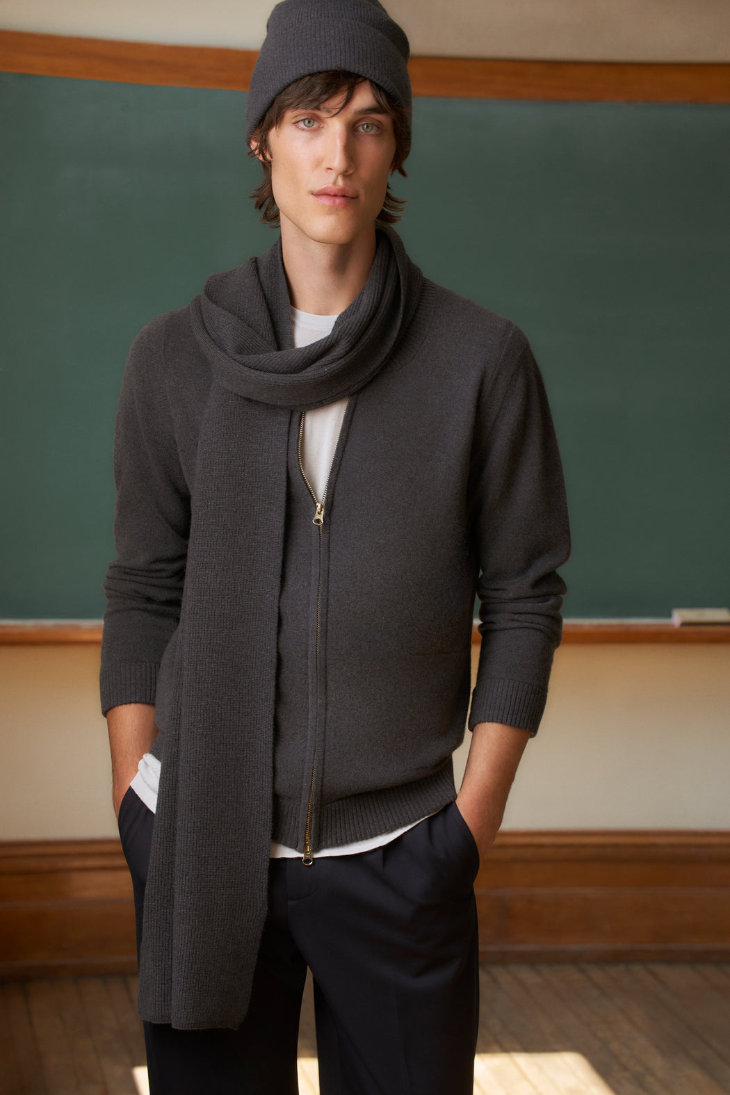 Tricotée en laine de mérinos cardée, filée expressément en Italie pour ça va de soi, dont la fibre extrafine (micron 15.5) et ultra longue (gage de longévité et beauté) donne l'impression de porter un nuage douillet — une matière émotionnelle et intelligente qui comprend le langage du corps.