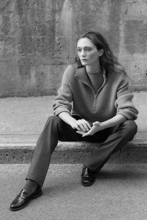 À cette quête d’authenticité, nous répondons par une exigence: la fibre. Sa finesse et sa longueur sont au coeur de notre savoir-faire. Nos filateurs la transforment avec art pour atteindre des titrages d’une rare délicatesse. Puis vient l’ouvrage: le choix des aiguilles, la densitédes mailles au centimètre, et le poids final. Autantde détails invisibles qui façonnent le confort, le tombé, la tenue et la longévité de chaque pièce. Ici, un vêtement en plus de garder sa valeur: il se patine, prend de la valeur et se transmet… Découvrez ces laines cardées d’exception en quatre déclinaisons: