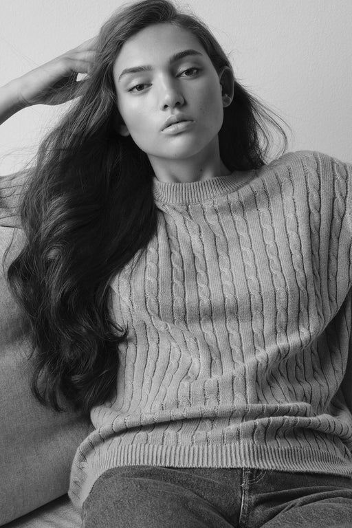 Cette matière est faite de pur cachemire de Mongolie, un duvet d’exception fruit d’un tri minutieux à la main qui vise à ne retenir que les fibres les plus longues et les plus fines. La beauté parfaite et l’élégance de ce fil rare n’ont d’égales que le plaisir de sa douce chaleur sur la peau.