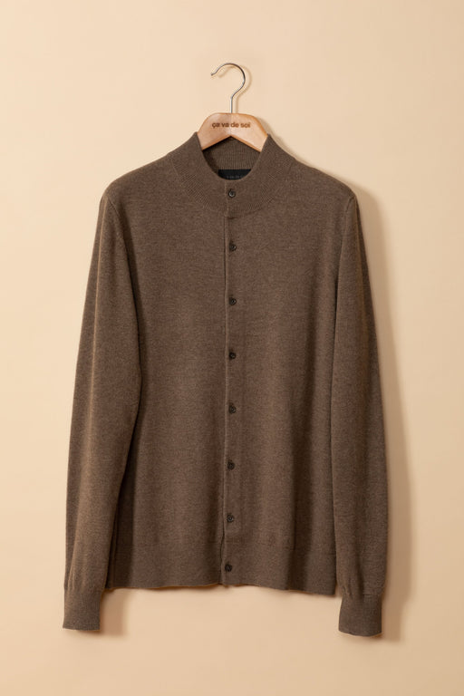Cette matière est faite de pur cachemire de Mongolie, un duvet d’exception fruit d’un tri minutieux à la main qui vise à ne retenir que les fibres les plus longues et les plus fines. La beauté parfaite et l’élégance de ce fil rare n’ont d’égales que le plaisir de sa douce chaleur sur la peau.