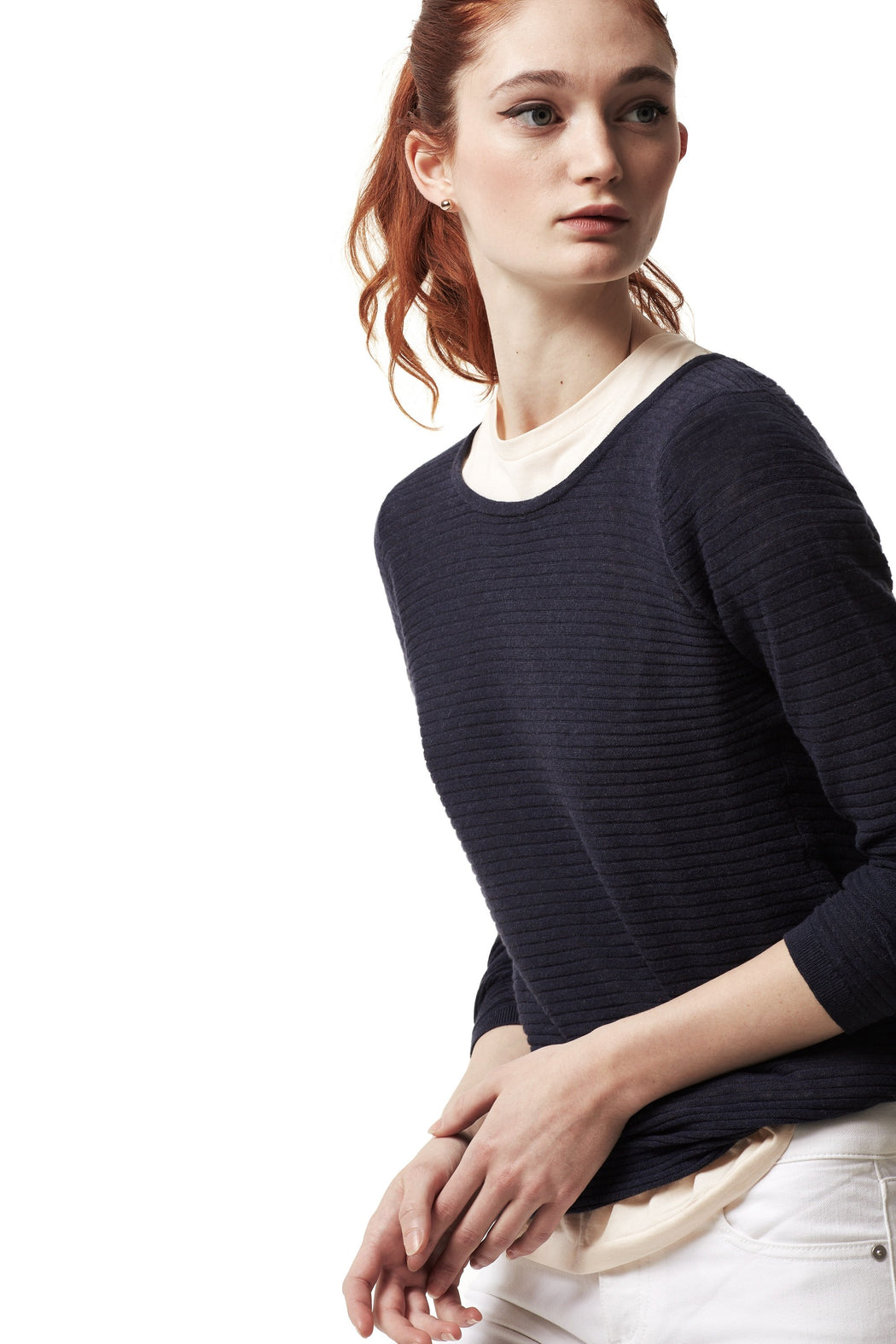 Ce pullover est fait en coton égyptien COM4-ZERO™, le fruit de 50 ans de recherche. Ce fil italien allie la beauté millénaire des cotons égyptiens et une technologie de filage d’avant-garde, éliminant presque entièrement l’ébouriffement du fil qui, avec le temps, l’amène à boulocher. Peu torsadé, ce fil conserve avantageusement l’élasticité naturelle de la fibre, ce qui confère plus de mouvement aux vêtements qu’il génère. Plus lisse, il gagne en solidité pour mieux résister au temps. Plus stable, il conserve ses couleurs indéfiniment.