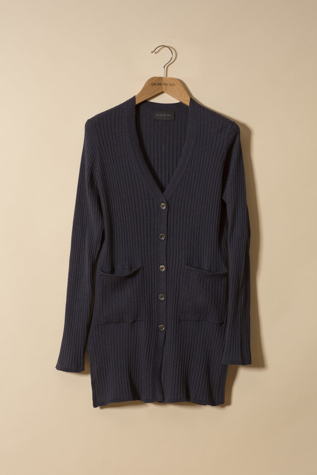 Cardigan col V côtelé à fentes