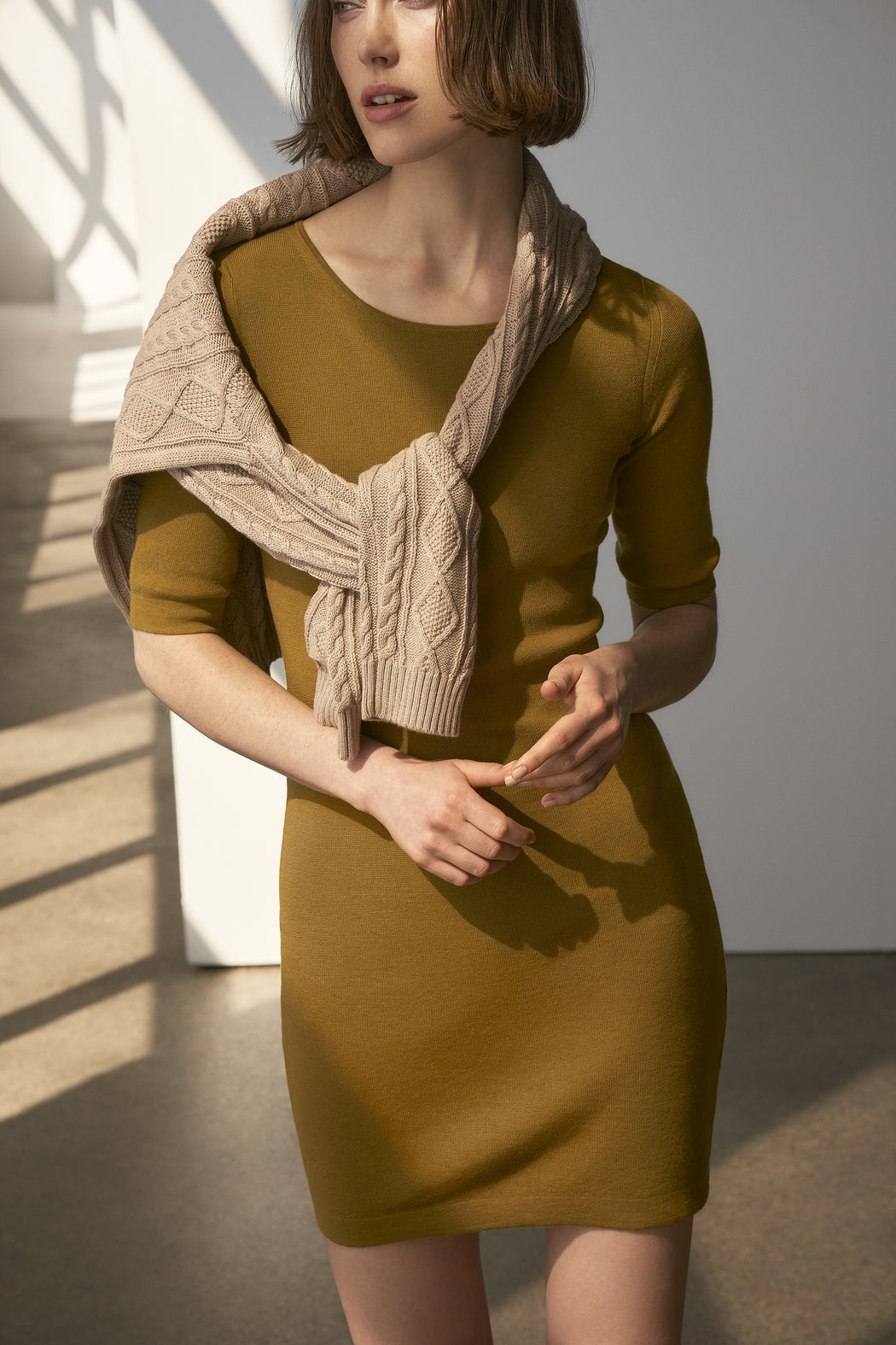 D'équilibre parfait entre son encolure, sa longueur xxx ses manches coude et son tricotage côtelé qui lui donne juste assez de tenue .