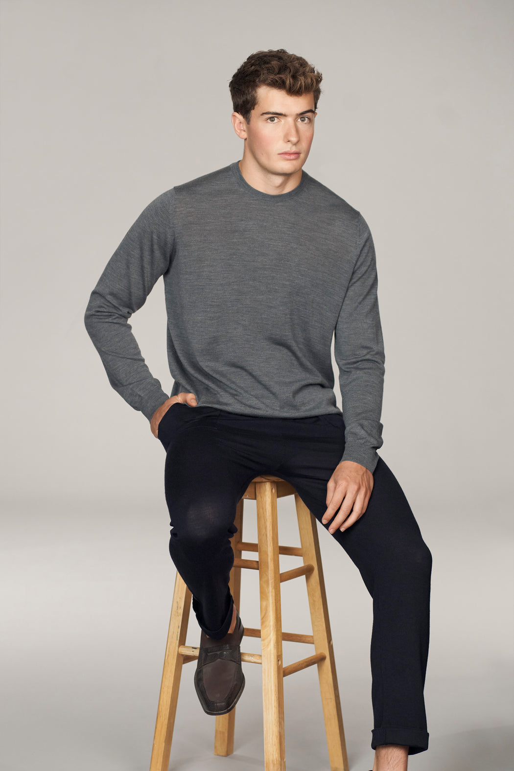 Ce tricot ras-du-cou iconique est fait d'une laine fine de mérinos australien Super 120 aux soies extra-longues qui sait s'adapte à l'environnement et au corps et qui se distingue par sa légèreté, sa douceur et sa brillance. Ça va de soi a choisi cette matière pour son attrait intemporel et thermique à porter directement sur la peau. La pureté et la modernité des lignes de ce ras-du-cou sauront répondre à vos moindres humeurs et besoins. Nous avons produit ce pull dans 4 couleurs essentielles, teintes par écheveaux par des maîtres italiens dans la région des Marches. Ce pull aux lignes pures et modernes est fait d'une laine fine de mérinos 140. Sa douceur, sa légèreté et son côté thermique en feront le compagnon idéal tout au long de l'année.