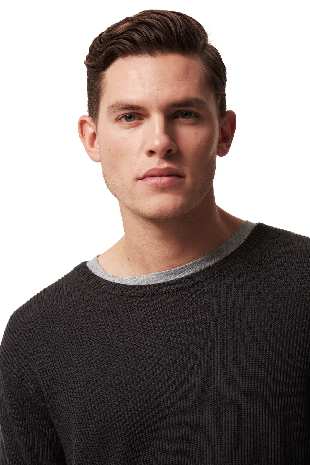 Beaucoup de femmes font l’acquisition du pull Hamptons. Parfois pour l’offrir, mais parfois elles le gardent pour elles. C’est vrai que ce pur classique est un baume et la matière en est certainement la cause, mais la technique de tricot y est aussi pour beaucoup. Afin de produire un pull ultrasoyeux, plus enveloppant mais toutefois léger, quatre fils ont été combinés plutôt que deux. Notre fabuleux coton biologique Nilo se retrouve donc offert en double portion à travers cet indispensable quatre-saisons proposé en quatre nuances : Papyrus, Nil, Fer et Poppy.
