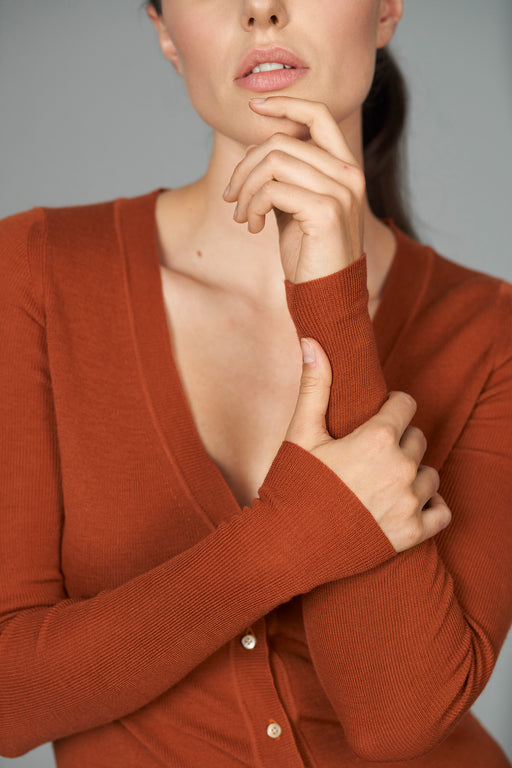 Même nos gros pulls enveloppants sont faits de fils fins, que l’on double ou triple pour vous faire traverser la froidure en grand confort. Les laines se distinguent également par leur filage, cardé ou peigné. Notre cachemire et notre laine vierge sont des fibres cardées, plus chaudes, plus solides et d’une esthétique plus rustique. Notre mérino extra-fin s’inscrit dans la catégorie des laines peignées, plus raffinées parce que d’apparence parfaitement uniforme. Le style du tricot dicte le choix de la technique.