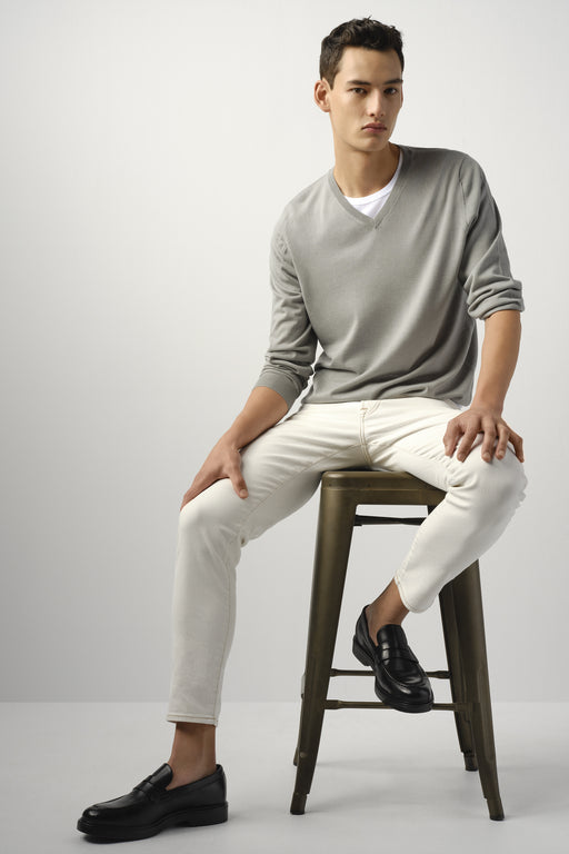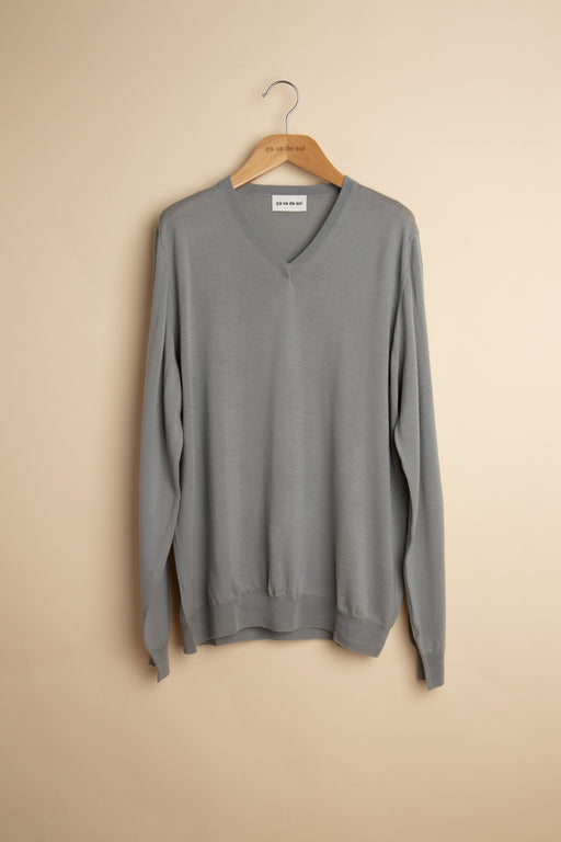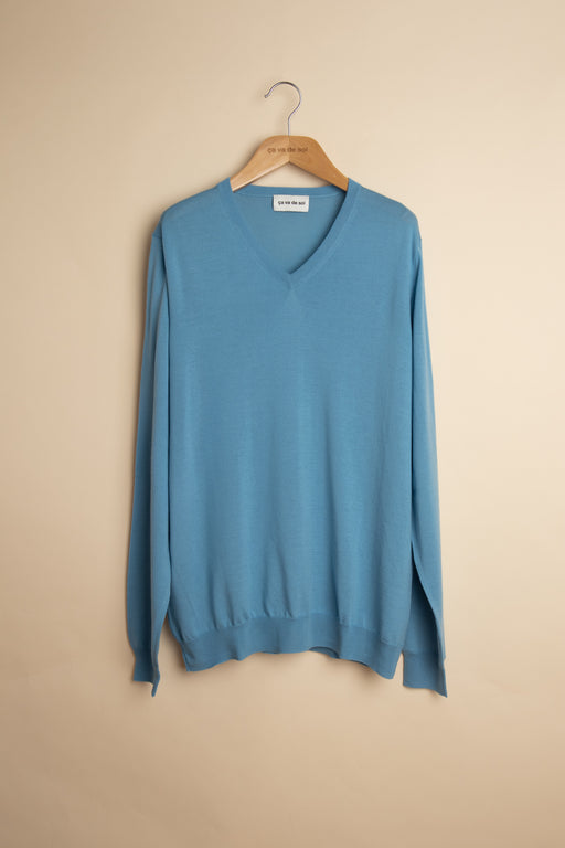 Même nos gros pulls enveloppants sont faits de fils fins, que l’on double ou triple pour vous faire traverser la froidure en grand confort. Les laines se distinguent également par leur filage, cardé ou peigné. Notre cachemire et notre laine vierge sont des fibres cardées, plus chaudes, plus solides et d’une esthétique plus rustique. Notre mérino extra-fin s’inscrit dans la catégorie des laines peignées, plus raffinées parce que d’apparence parfaitement uniforme. Le style du tricot dicte le choix de la technique.