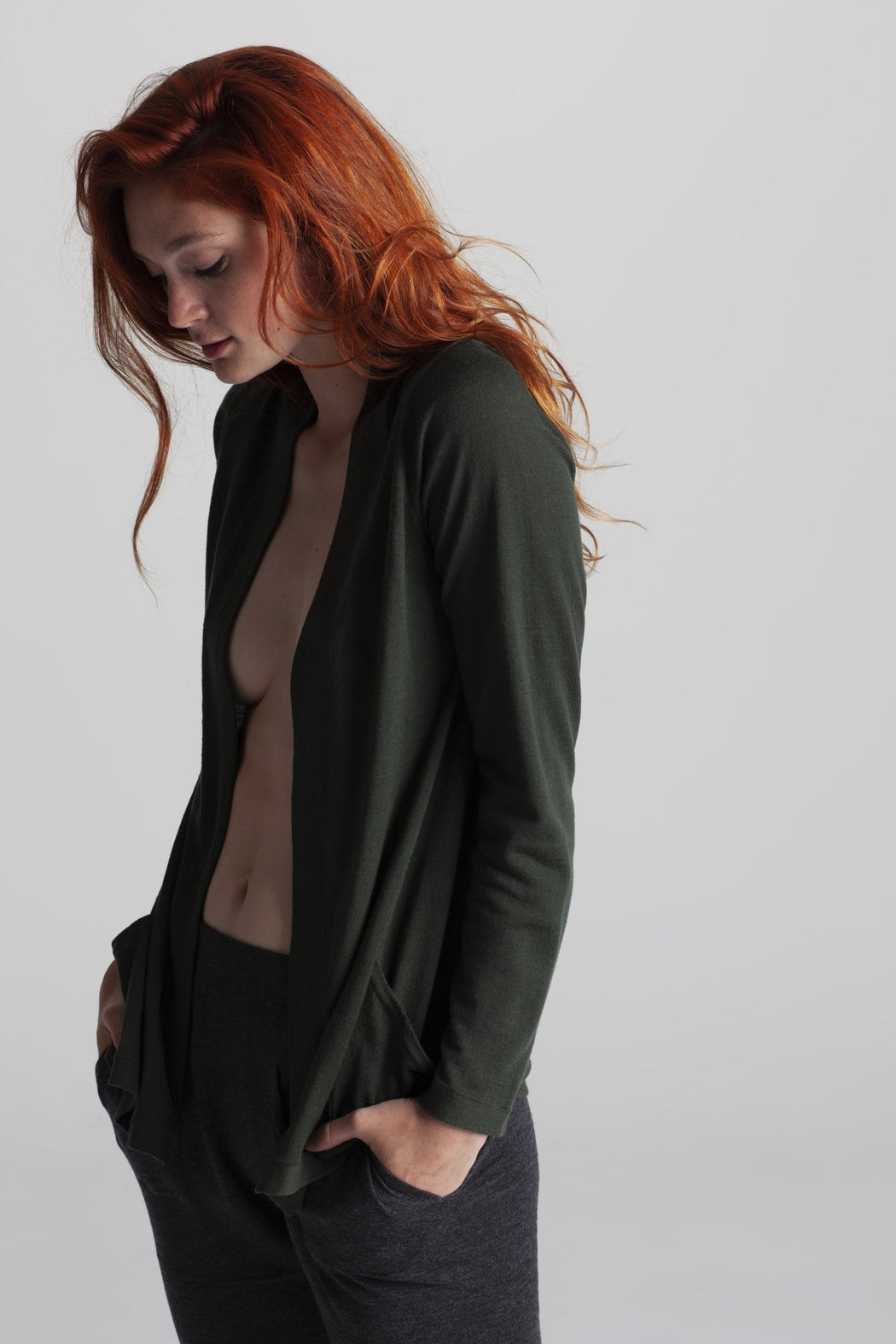 Ce cardigan décontracté, est fait de mérinos extra-fin Super 140 (micron 16.5). On ne fait usage que de la toute première tonte des moutons d’Australie. Cette laine toutes saisons sait s’adapter à l’environnement et au corps. Une laine rare qui se distingue par sa légèreté, sa douceur et sa brillance. Une laine toutes saisons qui se porte sur la peau, confort ultime de l’élégance.