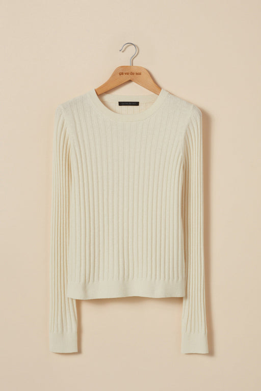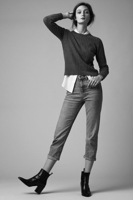 Même nos gros pulls enveloppants sont faits de fils fins, que l’on double ou triple pour vous faire traverser la froidure en grand confort. Les laines se distinguent également par leur filage, cardé ou peigné. Notre cachemire et notre laine vierge sont des fibres cardées, plus chaudes, plus solides et d’une esthétique plus rustique. Notre mérino extra-fin s’inscrit dans la catégorie des laines peignées, plus raffinées parce que d’apparence parfaitement uniforme. Le style du tricot dicte le choix de la technique.