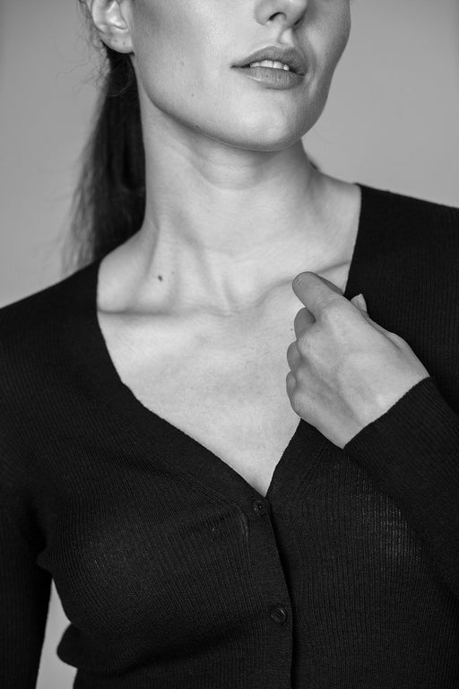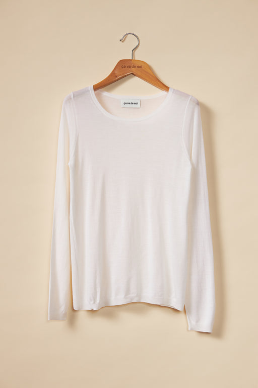 Même nos gros pulls enveloppants sont faits de fils fins, que l’on double ou triple pour vous faire traverser la froidure en grand confort. Les laines se distinguent également par leur filage, cardé ou peigné. Notre cachemire et notre laine vierge sont des fibres cardées, plus chaudes, plus solides et d’une esthétique plus rustique. Notre mérino extra-fin s’inscrit dans la catégorie des laines peignées, plus raffinées parce que d’apparence parfaitement uniforme. Le style du tricot dicte le choix de la technique.