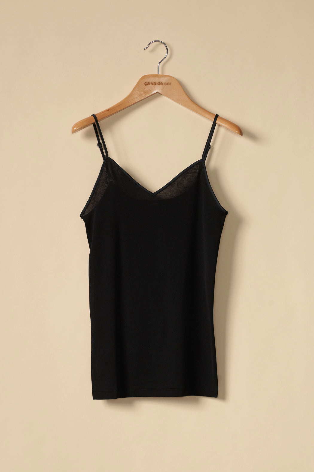 This fine strap cami is a pure classic from Oscalito. The historical circular knitting machines used to knit this product operate at lower speeds which results is a unique fabric of pure Egyptian Mako mercerized cotton, that offers long-lasting memory. The mercerized cotton used to make this garment, is also known as Lisle Cotton (Filoscozia®). Filoscozia® calls for softness with a silky texture, and is known for its hypoallergenic properties and a fresh feel on the skin. This shell will quickly become your best daily companion. ça va de soi chose this second-skin essential for its classic appeal, its durability and refined make. Available in black, white, and skin.