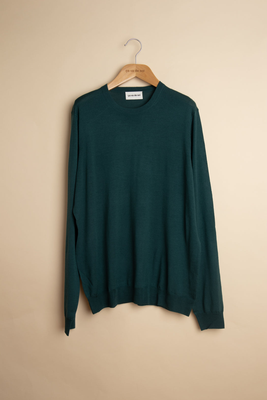 Made of fine, super 120 worsted merino wool with extra long staples that adapts to the environment and the body. ça va de soi chose this material for its timeless and thermal appeal to be worn directly on the skin.