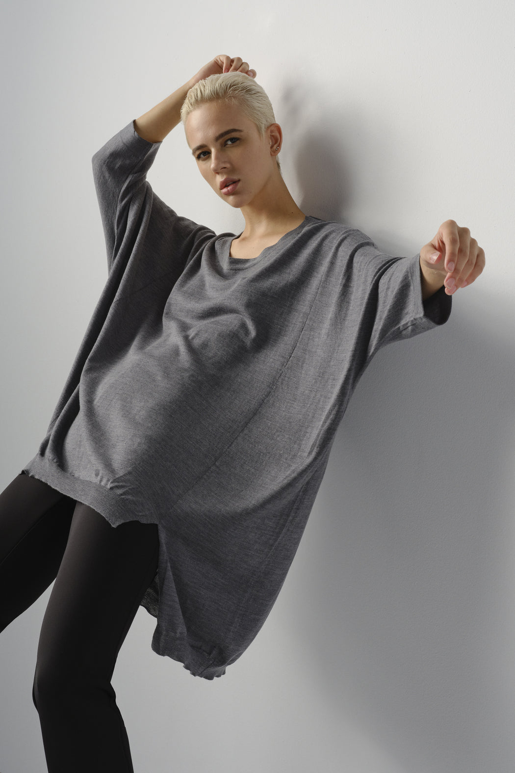 Inspired by the outfits of antiquity, this asymmetrical tunic can be worn in many ways, leaving room for the imagination.