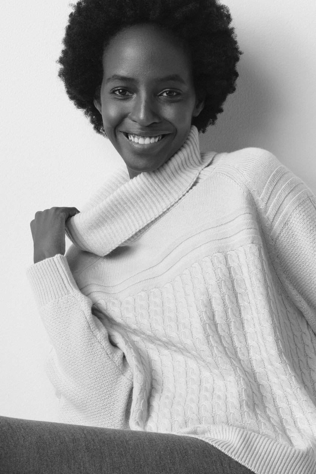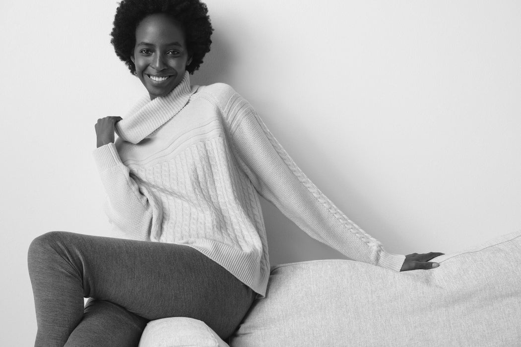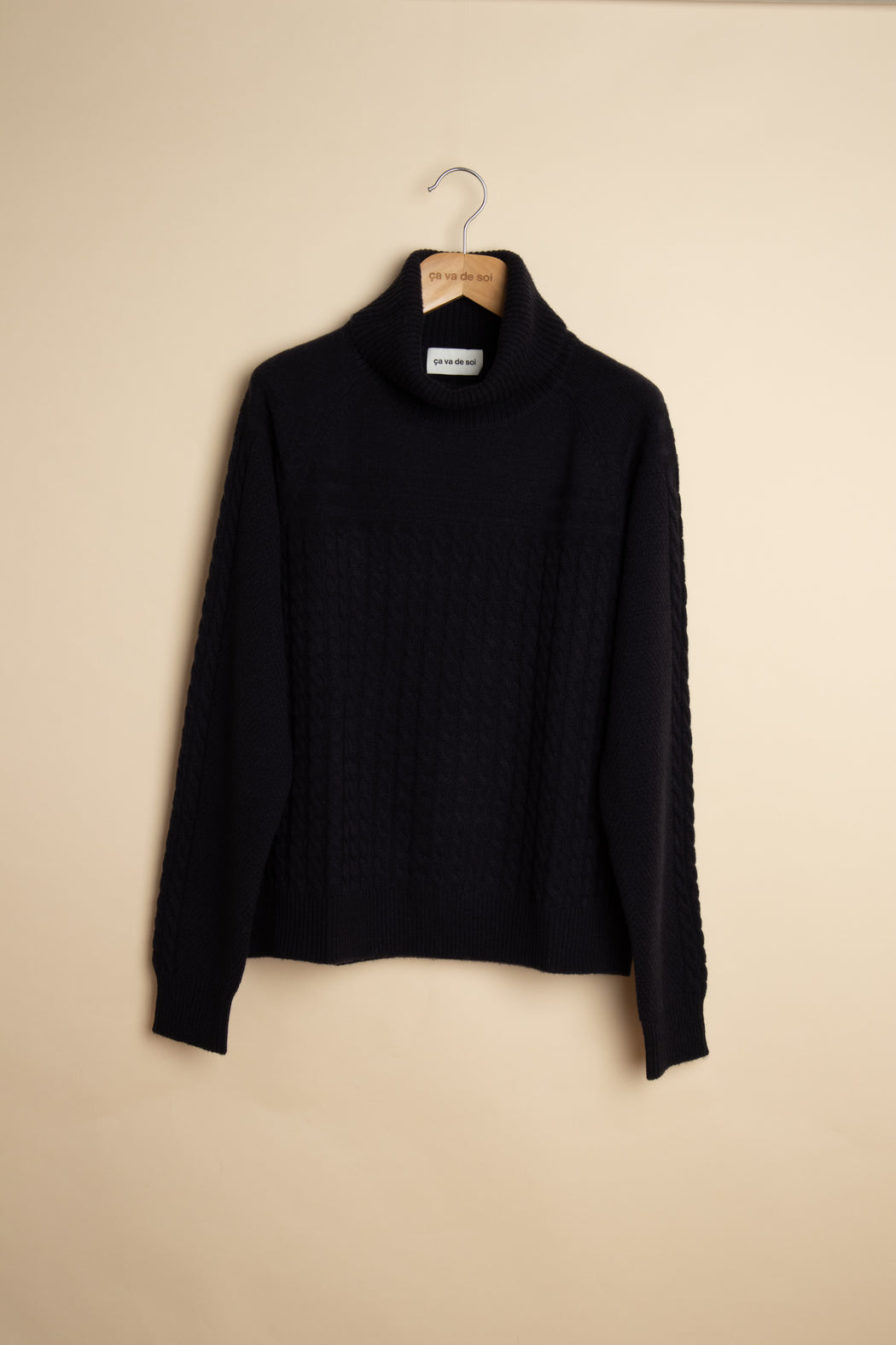 Simultaneously nostalgic, feminine, practical and fun. This effortless turtleneck will bring you warmth and comfort all winter long. The details and textures are inspired by the great classic sweaters worn in ski resorts.