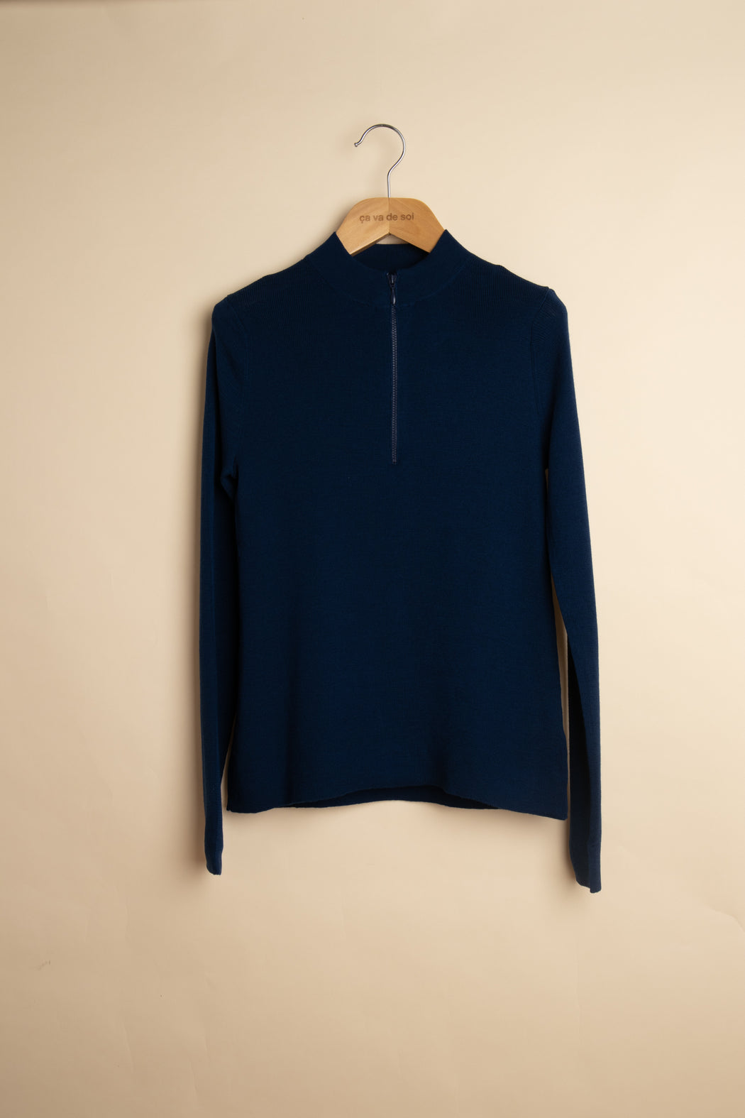 Made of fine, super 120 worsted merino wool with extra long staples that adapts to the environment and the body. ça va de soi has chosen this material for its timeless and thermal appeal to be worn directly on the skin, in all circumstances thanks to the purity of its lines.