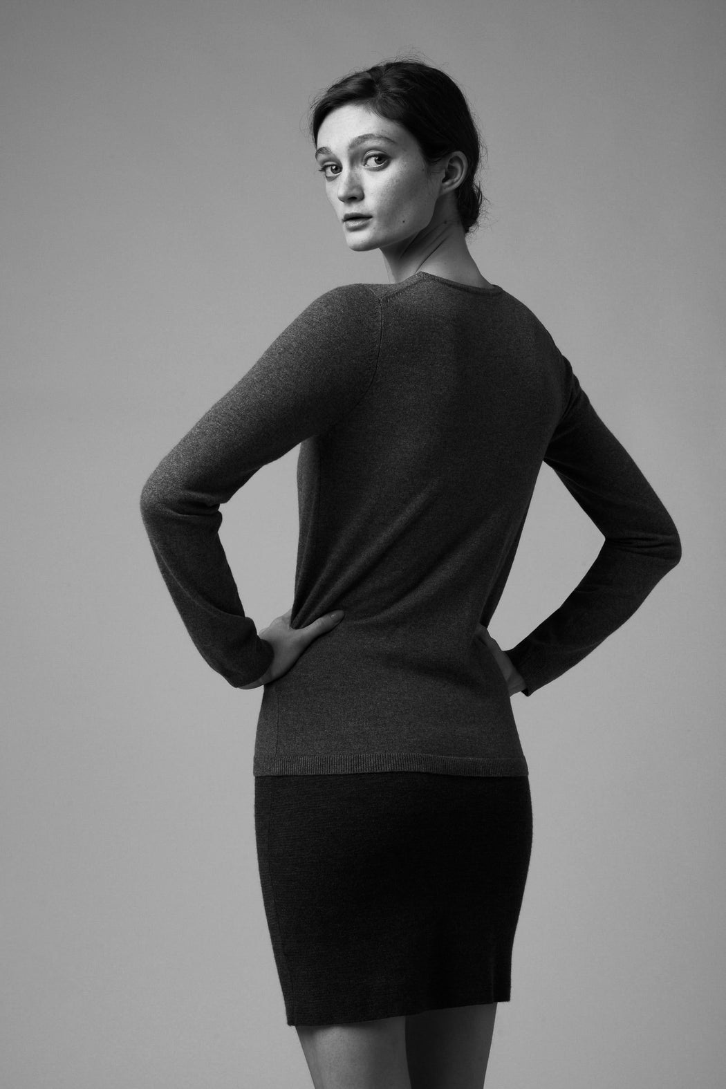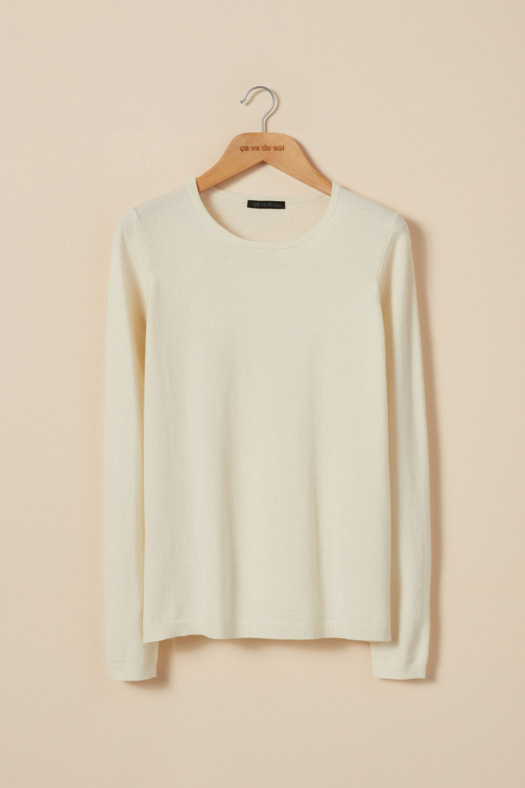It would be so easy to say that this is just another long-sleeved crewneck sweater. Not exactly. We’re talking about a ça va de soi sweater after all! In Super 160 merino wool, carded finesse. Something rare. It changes everything. It’s the quality of the fibre, careful spinning process, meticulous needlework, attention given to the perfectly adjusted armhole. You don’t lightly choose something this divine. It chooses you. On its own, the extrathin tubular border enhancing the collar is a passport to endless versatility, transporting you from very elegant to ultracasual. It’s in each detail that a sweater may or may not become a classic. Behold the classic here, which comes in Black, Sapphire, Caviar ou Pearl. The choice is yours!