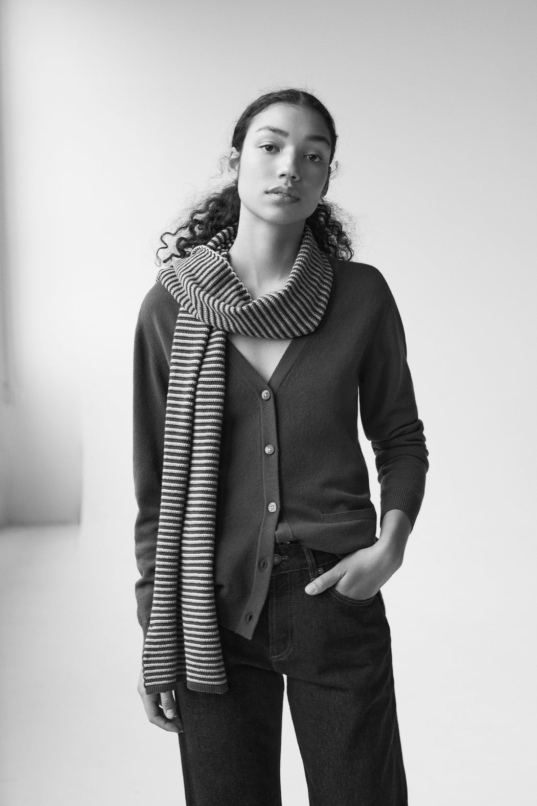 Knitted in carded merino wool, spun expressly in Italy for ça va de soi, whose extrafine (15.5-micron) and ultra-long fibre (a guarantee of longevity and beauty) gives the impression of wearing a cozy cloud — an emotional and intelligent material that understands one’s body language.