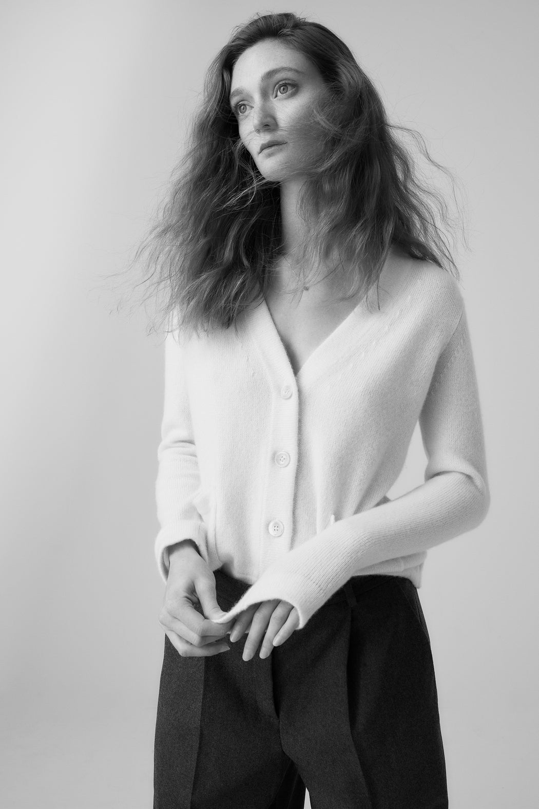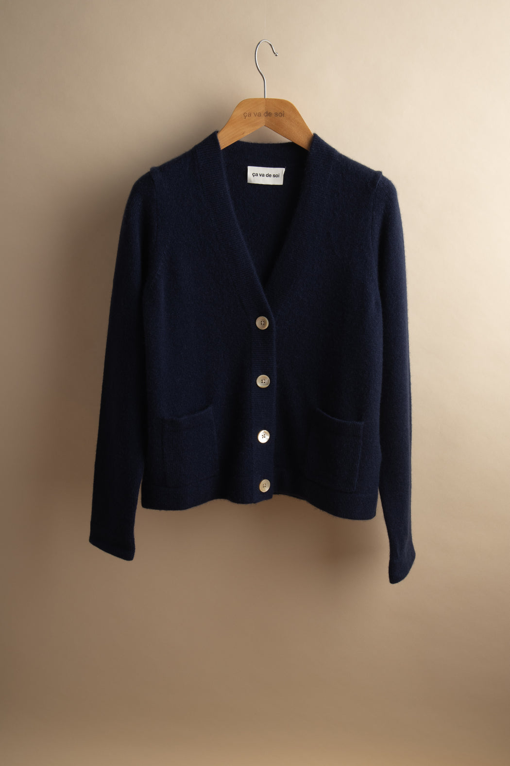 This cardigan is a tribute to one of the most treasured products in our history, the Vartan. Looking at it is like touching it… Its airy jersey knit gives it an almost impalpable lightness. The tubular finishes at the collar, cuffs, and hem retain its suppleness. This combination of fluidity and structure evokes the beauty of a handcrafted piece, both simple and profoundly authentic.