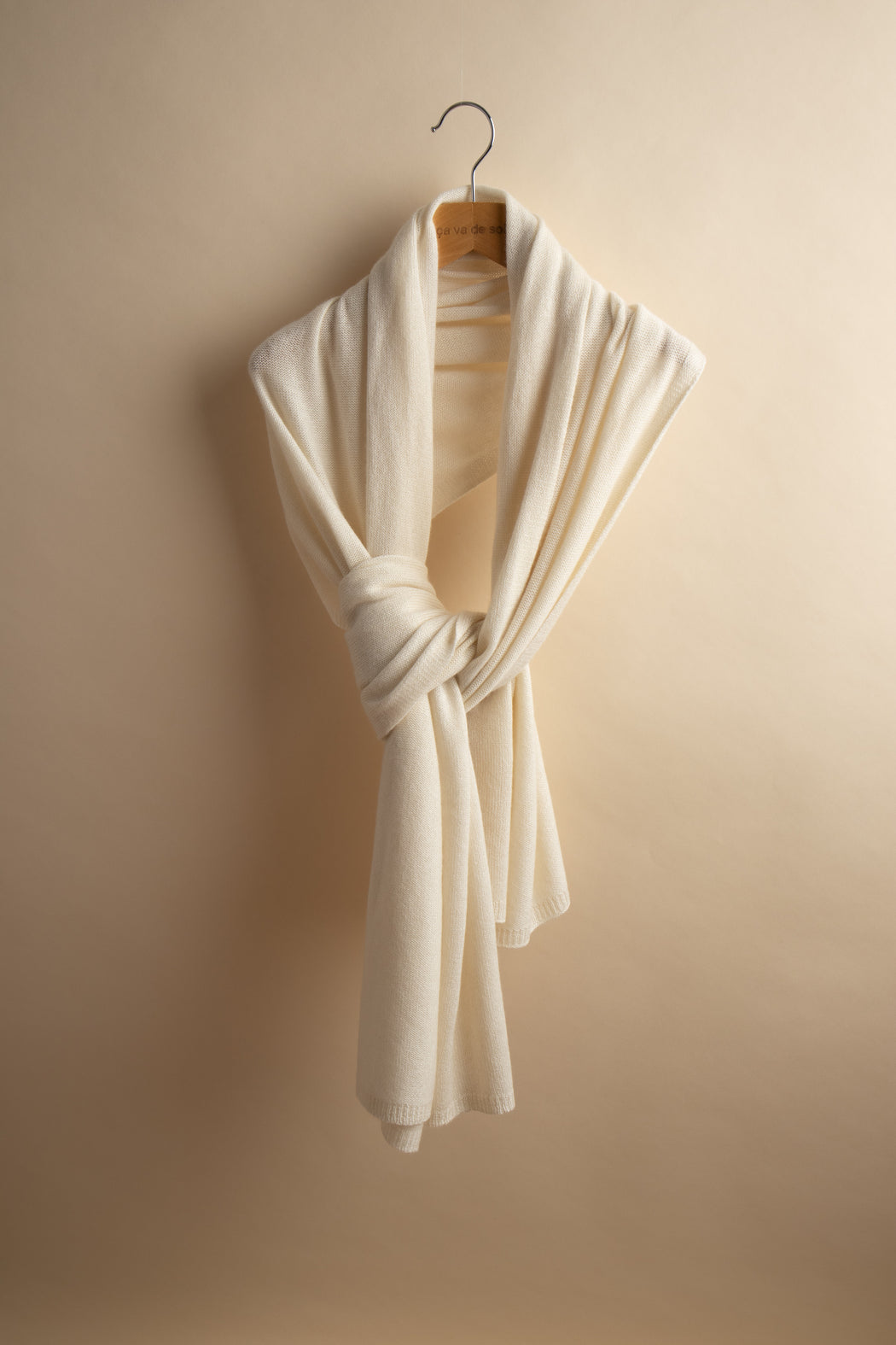 Like a draped garment, this stole will accompany you everywhere, season after season, day and night, in all its splendor. Opt for this silky-soft shawl for its ultimate comfort and delicate feel around your neck… or over your shoulders.