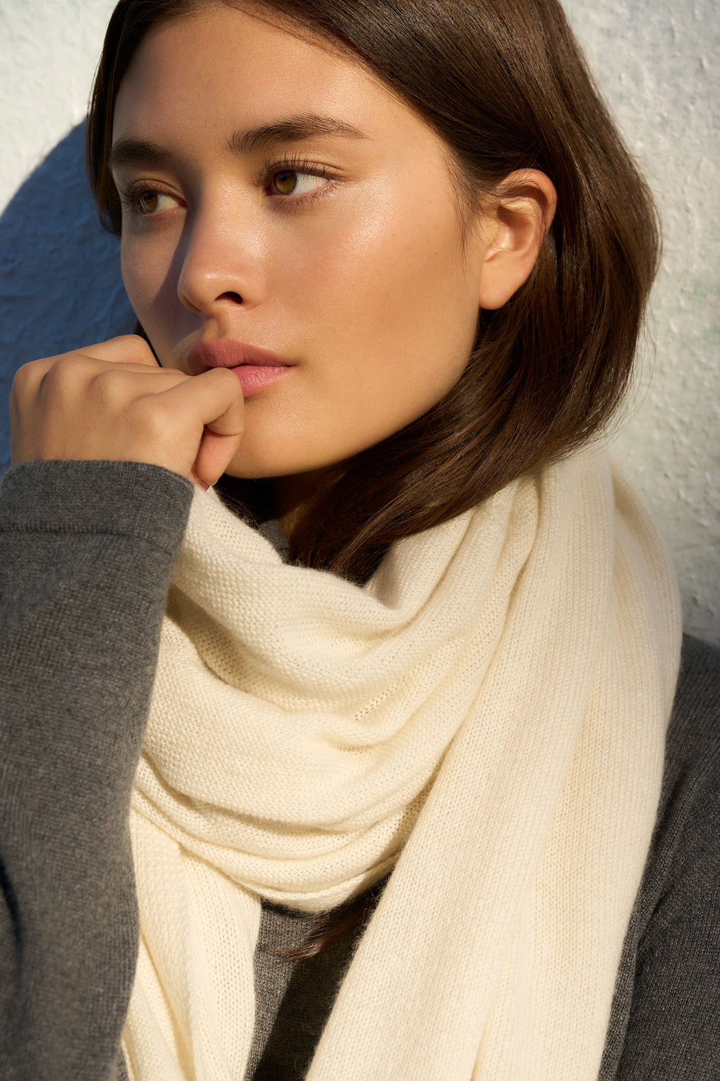 Thermal and insulating, it is warm in winter, cool in spring. Light and luminous, this unique blend of cashmere and silk can be worn year-round like a second skin—airy, soft, and durable.