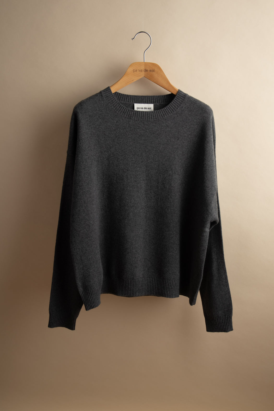 Knitted in a carded cashmere-silk blend (70-30), spun in Italy, it combines the enveloping warmth of cashmere with the freshness and refined sheen of silk, offering a unique feel and a powdery elegance.