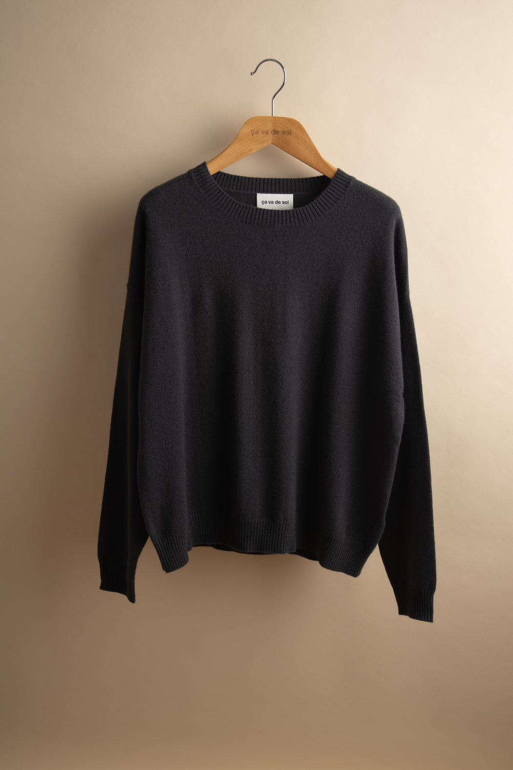 Knitted in a carded cashmere-silk blend (70-30), spun in Italy, it combines the enveloping warmth of cashmere with the freshness and refined sheen of silk, offering a unique feel and a powdery elegance.