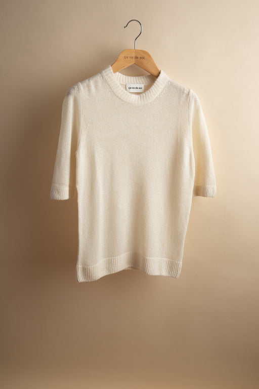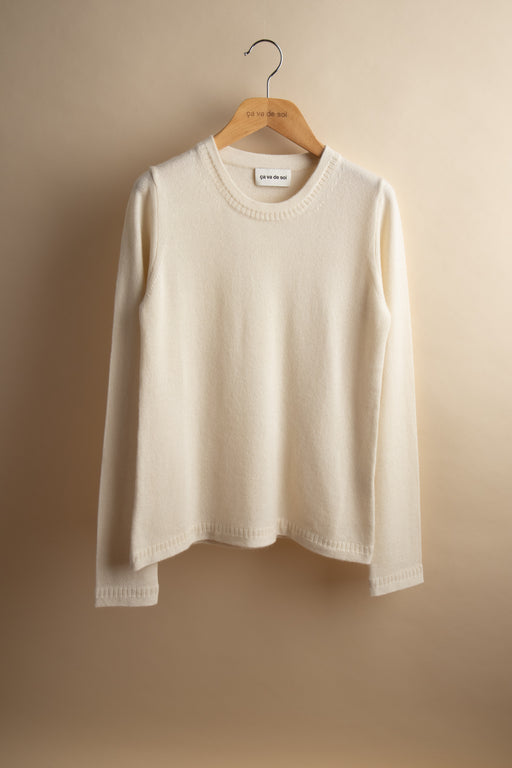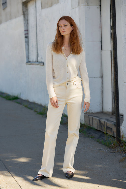 For the first time, we are introducing a yarn as rare as it is exquisite: carded cashmere and silk. An exceptional blend, spun by the skilled hands of our Italian artisans, in a 2/28 count — a true companion in tenderness. The cloak of warmth of cashmere blends with the natural freshness and refined sheen of silk.