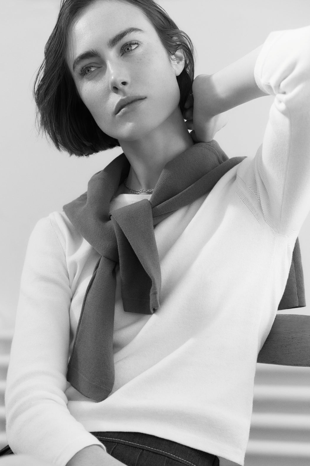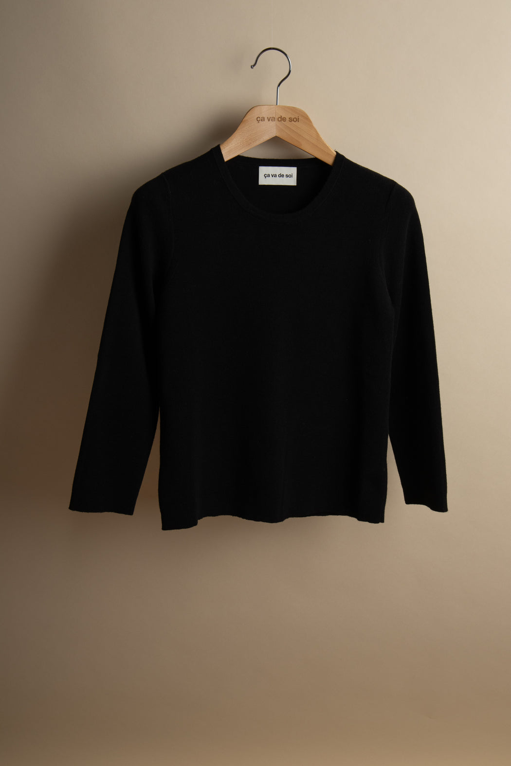 Manet is a timeless essential that highlights your femininity with subtle elegance. Its 1x1 rib knit ensures excellent opacity, while the straight cut, classic crew neck, and tubular-knitted edges at the sleeves and hem, create a clean, minimalist silhouette. The charming bracelet-length sleeves add a signature touch of refined style.