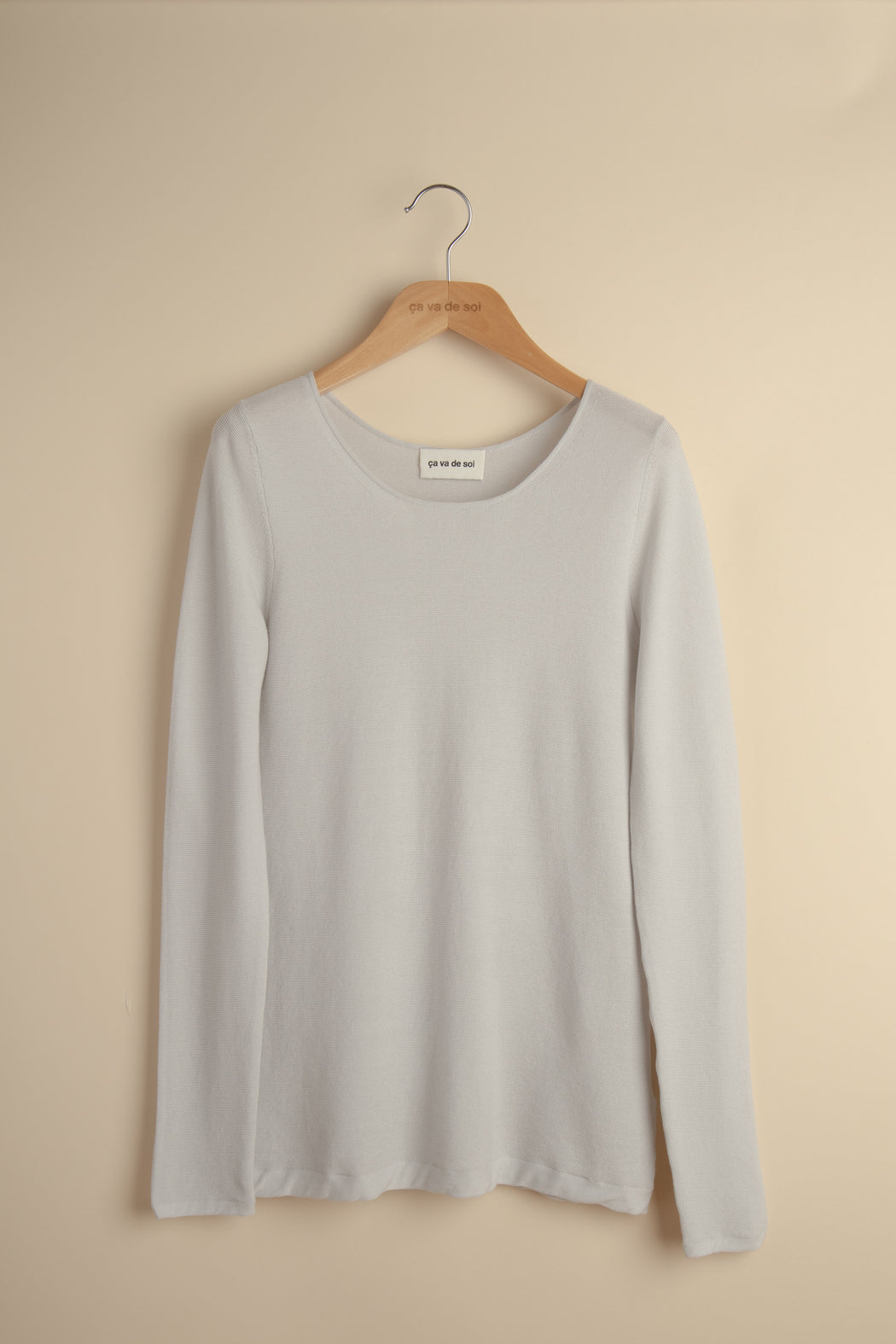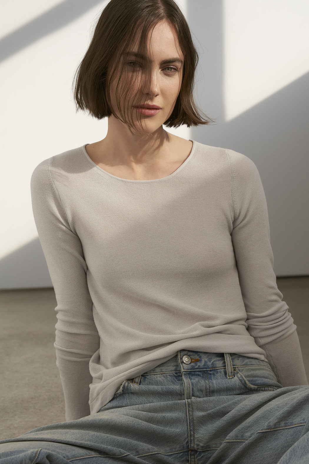 It's made of COM4-ZERO™ Egyptian cotton, an Italian yarn that combines the age-old beauty of Egyptian cottons with state-of-the-art spinning technology, virtually eliminating the fuzz in the yarn that might create pilling over time. Slightly twisted, this yarn advantageously retains the natural elasticity of the fibre, which gives more movement to the garments it generates. Smoother, it gains in solidity to better resist time. More stable, it retains its colors indefinitely.