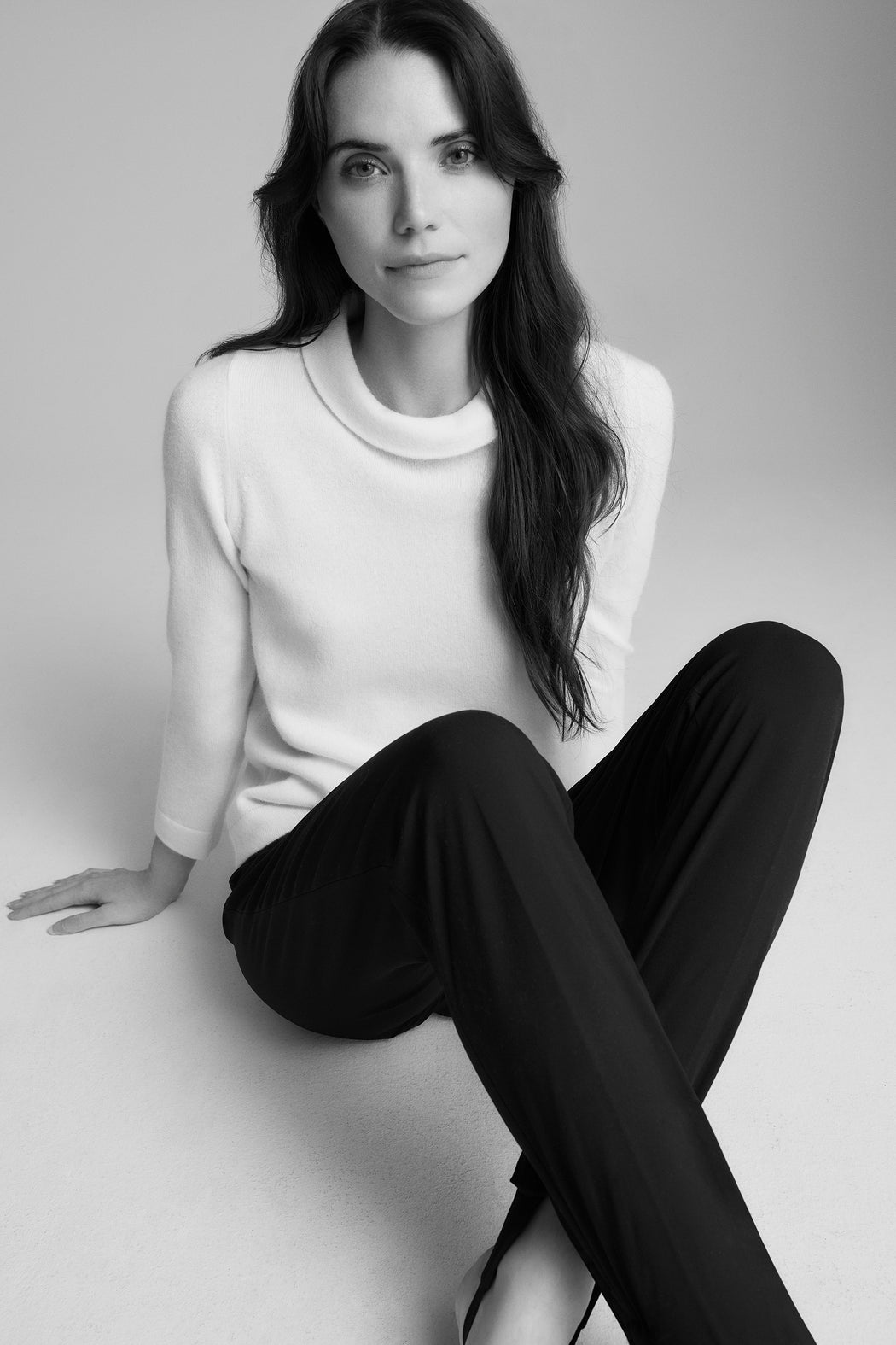 Its shorter, more open neckline than a classic turtleneck folds delicately into a small lapel, subtly framing the face and neck.