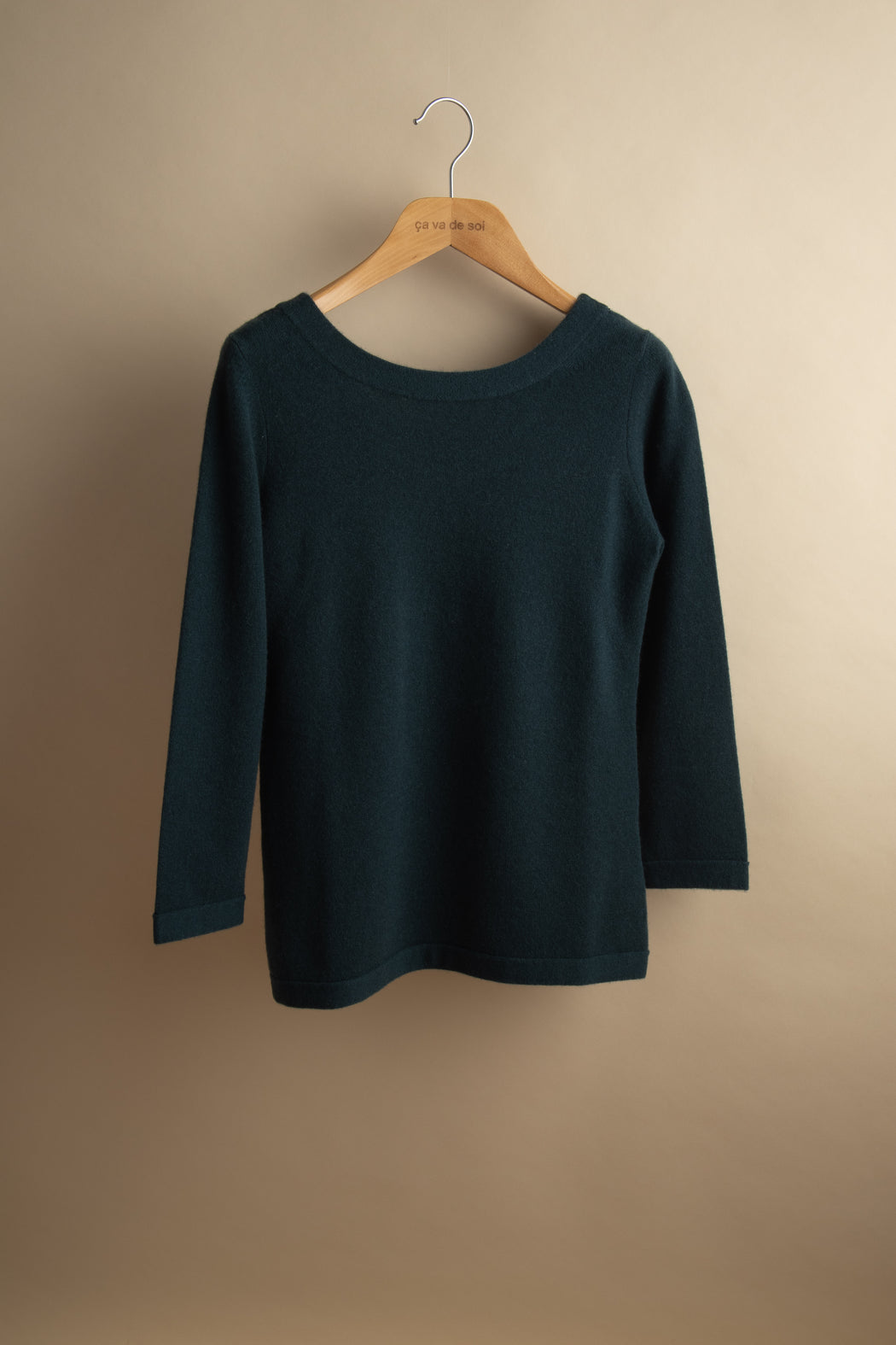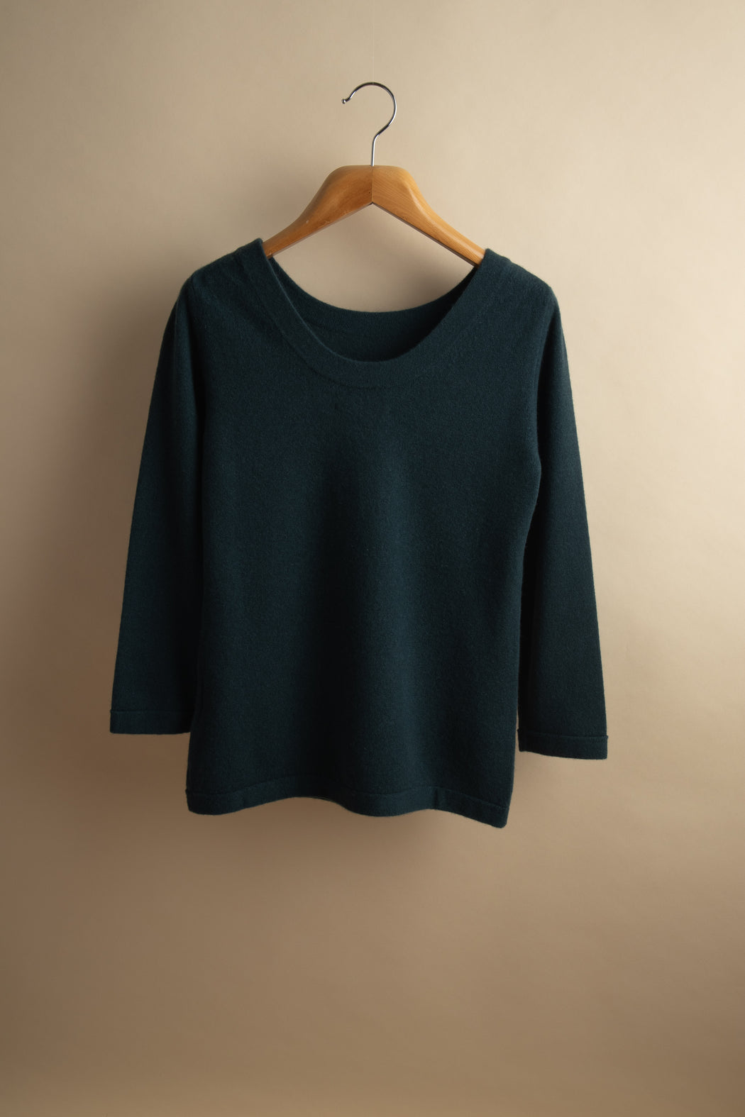 It's called the jewel of a piece, the sweater that elevates every moment. Inspired by ballerina tops. Ideal for special evenings or occasions that call for a touch of romance. It exudes a simple and timeless beauty, every detail designed to enchant. The tubular trim at the neckline adds a touch of understated sophistication, elegantly highlighting the neckline.
