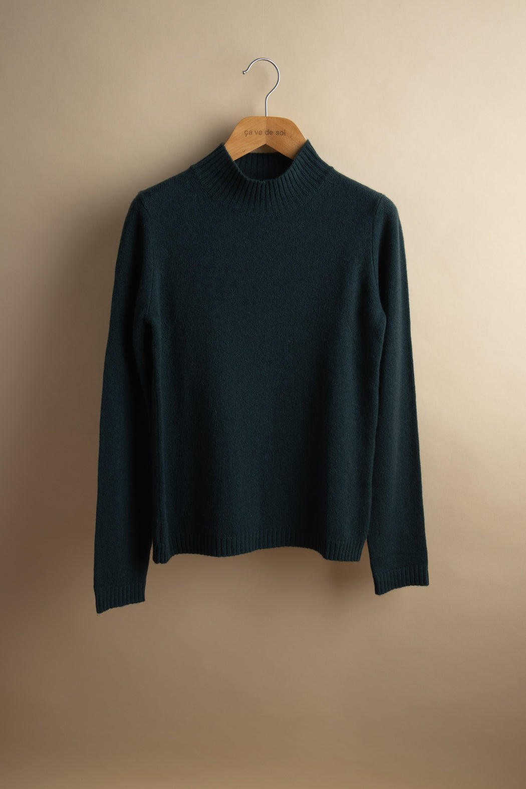 Halfway between a crew neck and a turtleneck, the funnel neck of this sweater embodies the perfect balance between comfort and elegance. Its airy jersey knit gives it an almost imperceptible lightness. The ribbed trim at the neck and cuffs retains its suppleness.
