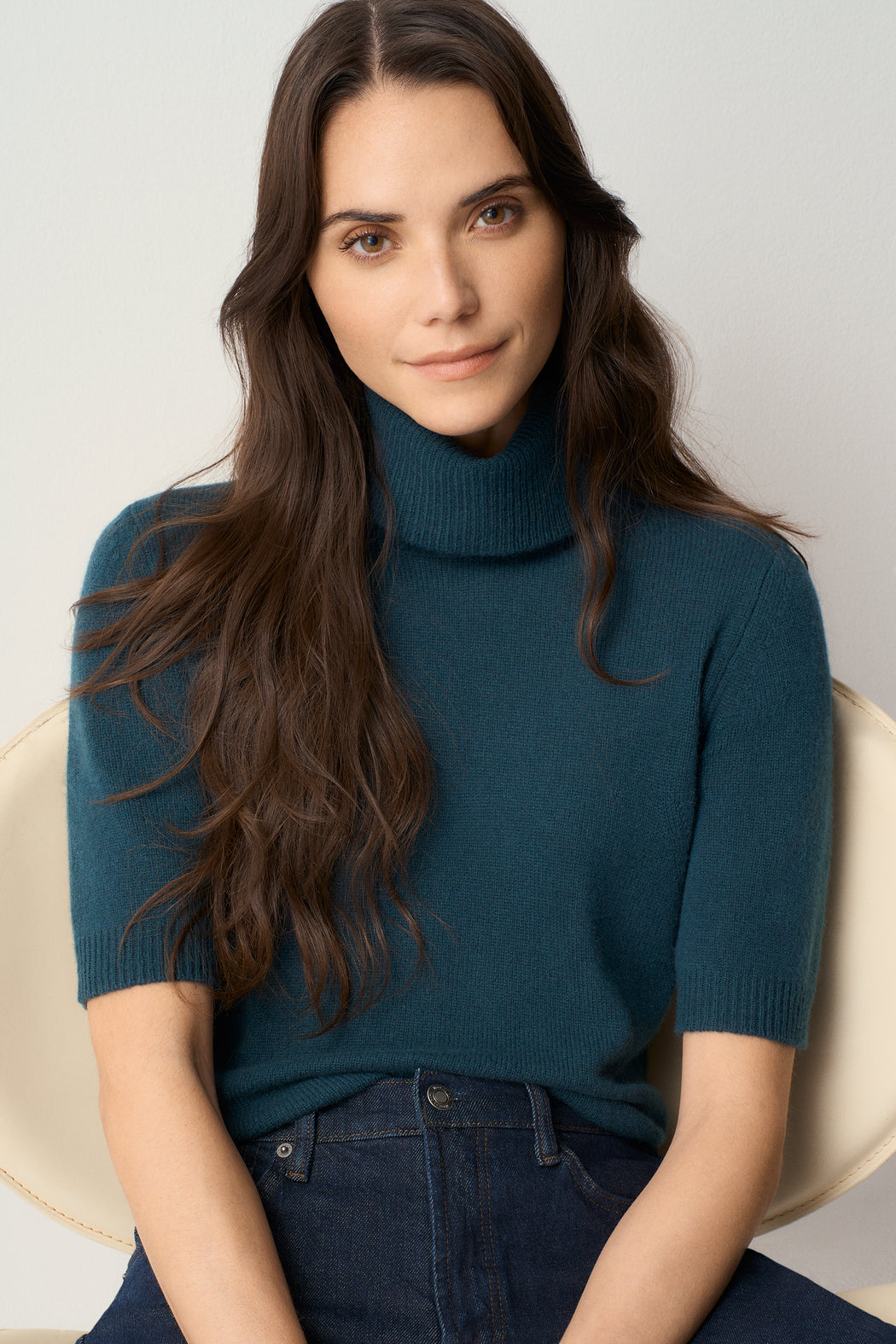 A turtleneck reimagined with a light touch. Its elbow-length sleeves give it a modern and unexpected look that feels like a caress against the skin.