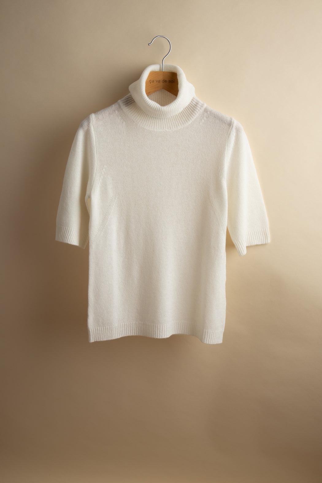 A turtleneck reimagined with a light touch. Its elbow-length sleeves give it a modern and unexpected look that feels like a caress against the skin.